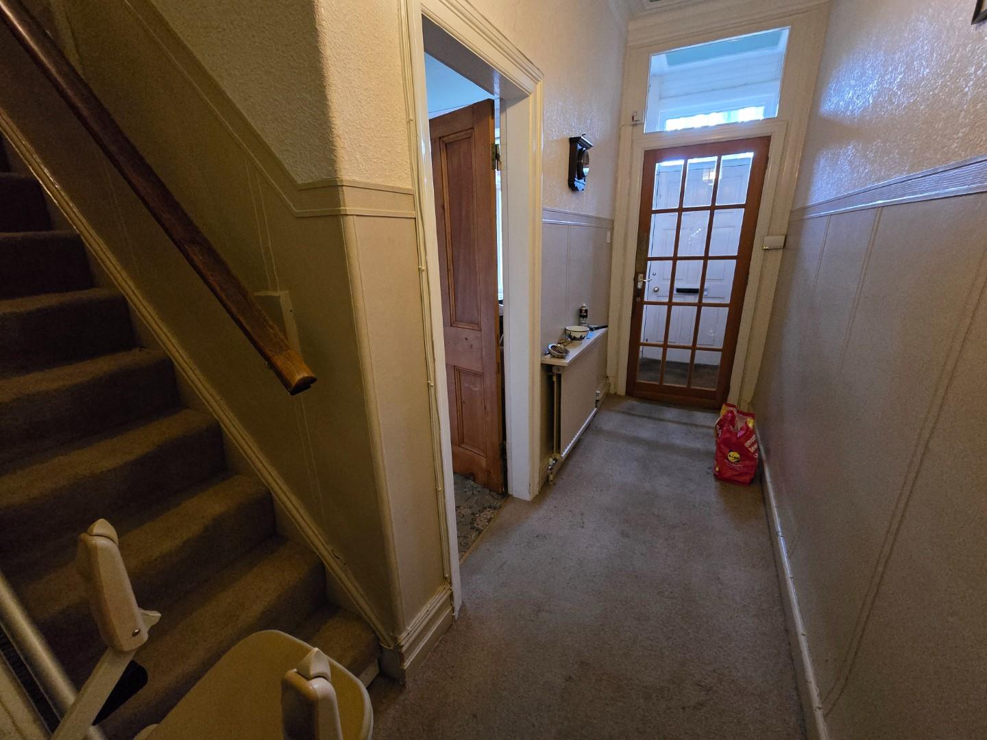 Has a rear facing window, two radiators, ceiling light point, period coving and an under stairs storage cupboard.