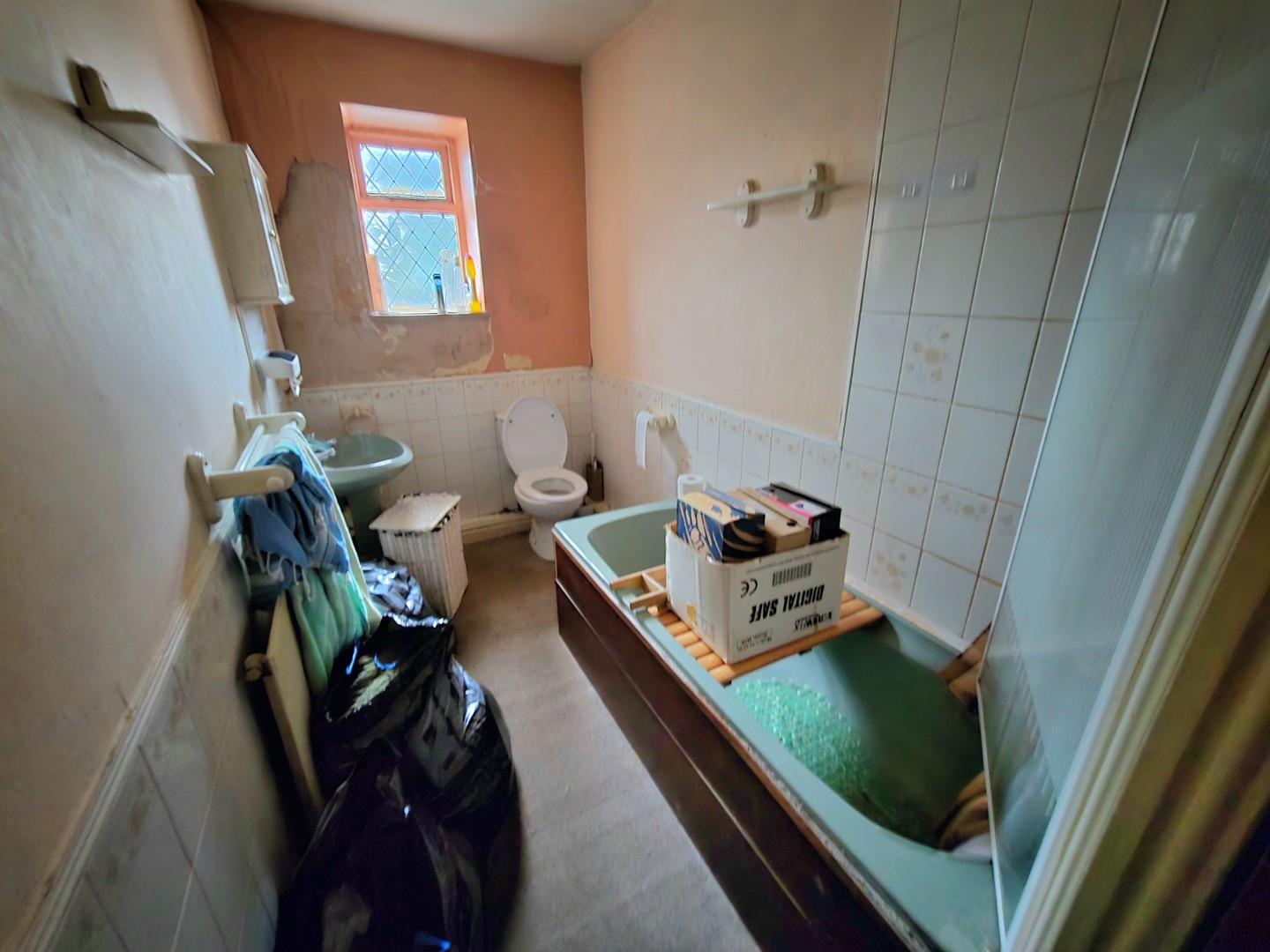 Has a rear facing double glazed window, radiator, two ceiling light points, a storage cupboard and a three piece suite comprising bath, W.C. and sink.