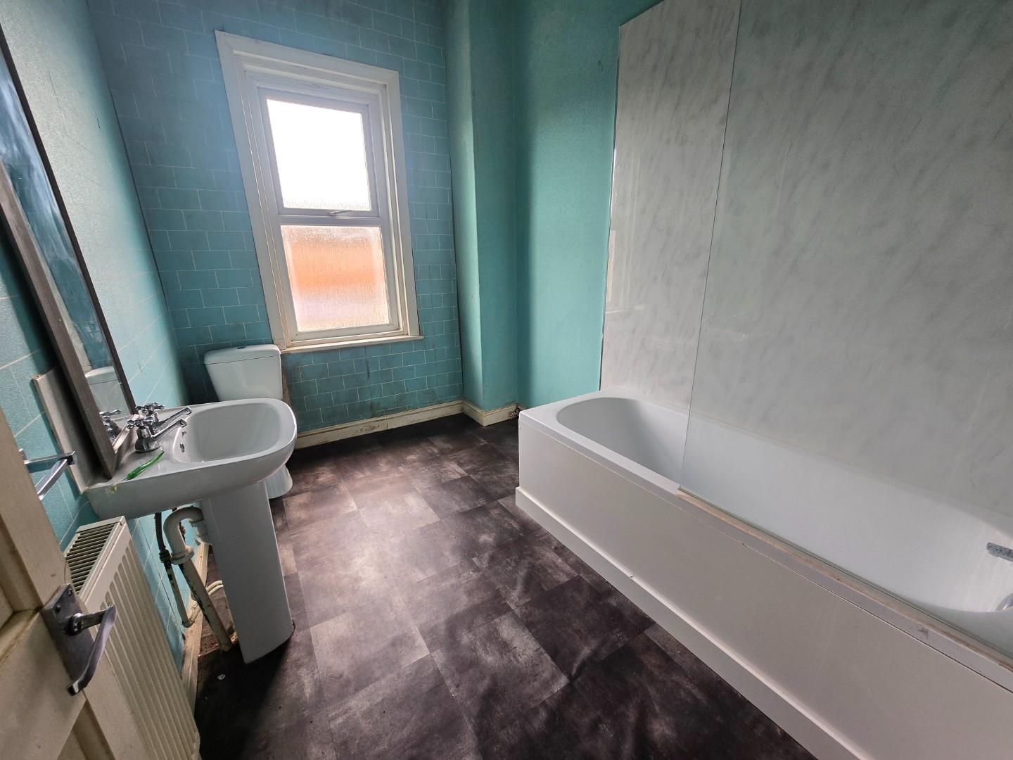 Has a rear facing double glazed window, radiator, ceiling light point and a three piece suite comprising bath, W.C. and sink.