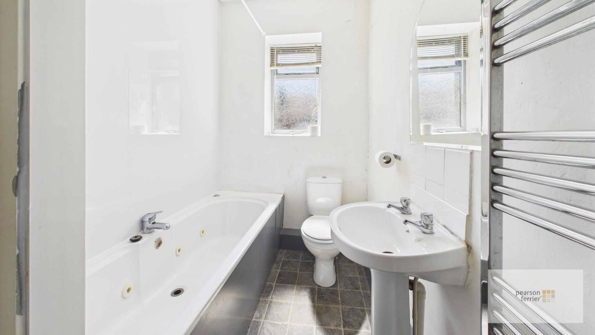 Has a window to the rear, heated towel rail and a three piece suite comprising bath, W.C. and sink.