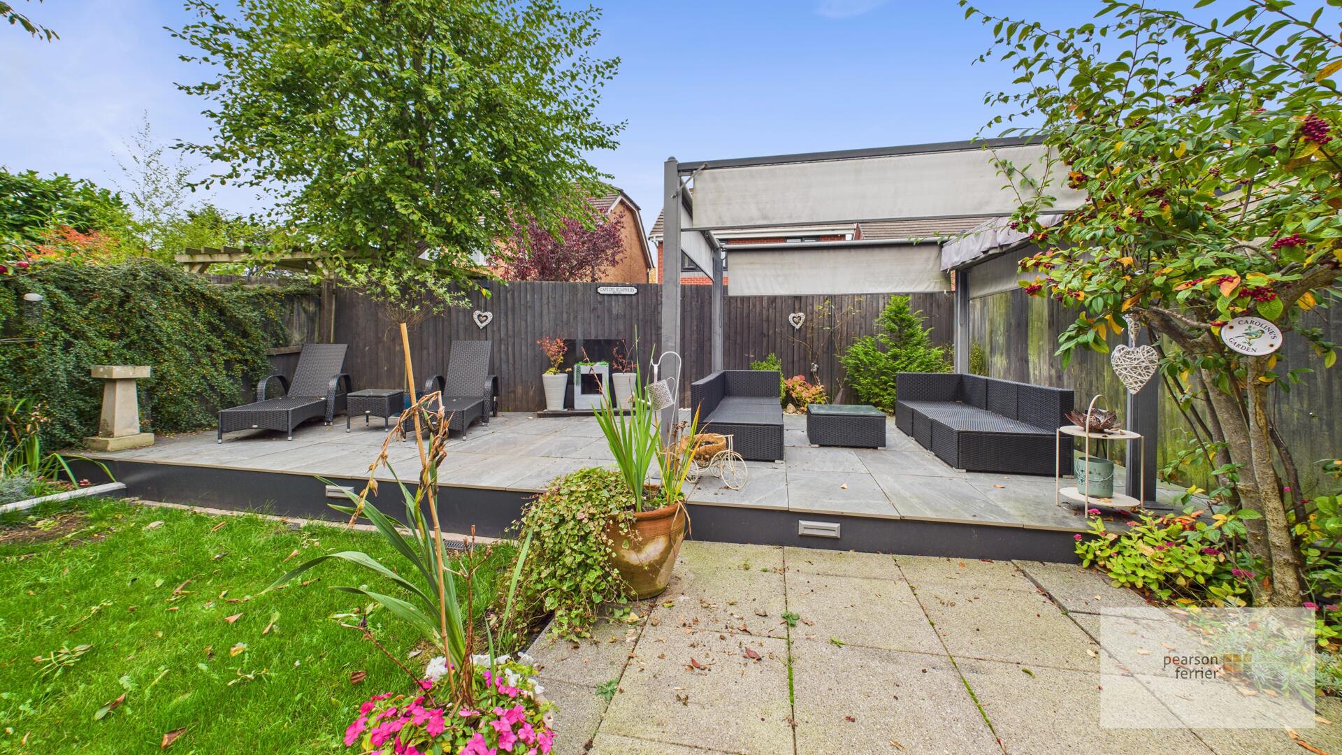 To the rear of the property is a landscaped garden which is laid to lawn, with paved and composite decked patio areas with lighting and power points, mature planted borders and fence surround.
