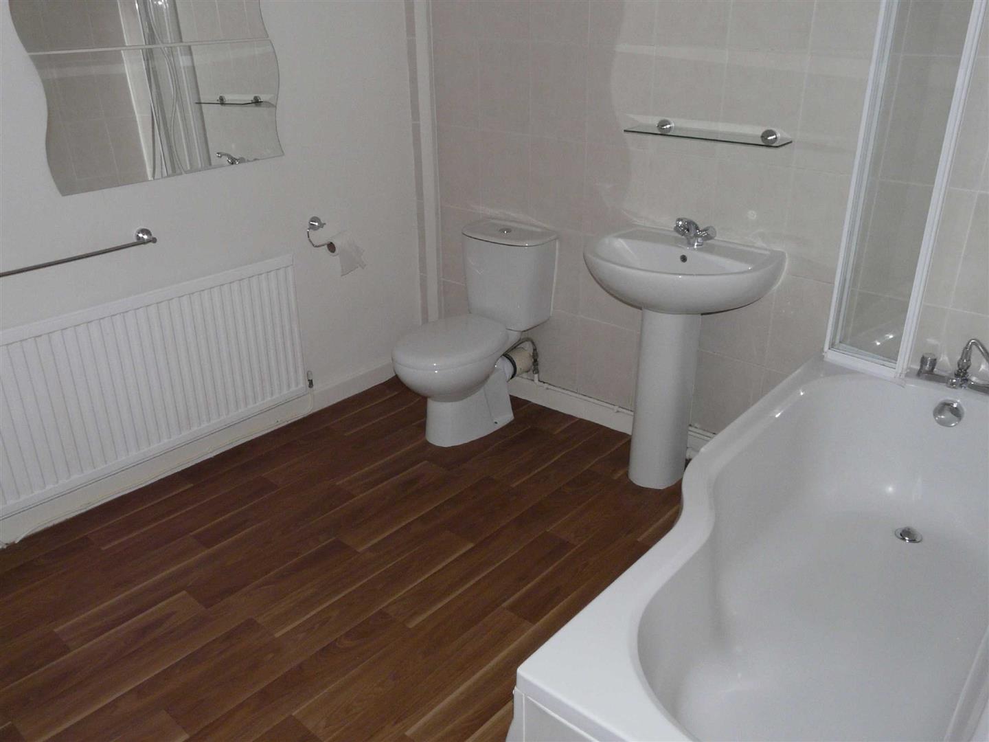 A rear facing UPVC double glazed window, wooden effect flooring, double radiator.