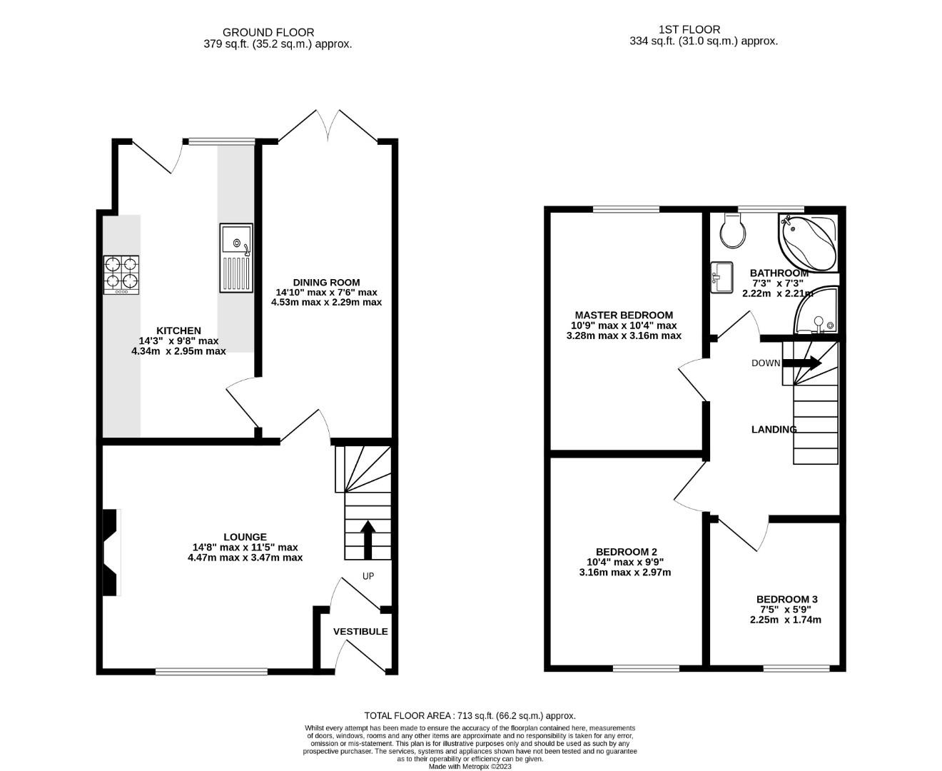 Bedroom 3.28 max x 3.16 max (10'9" max x 10'4" max )