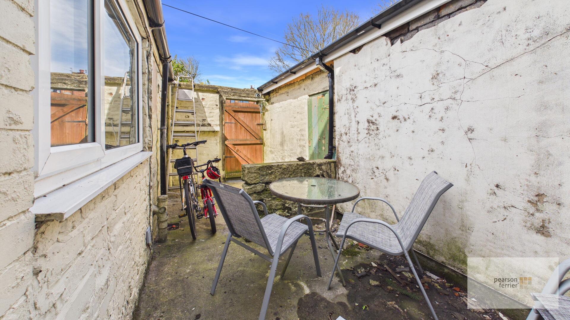 Garden forecourt with gate, enclosed rear yard