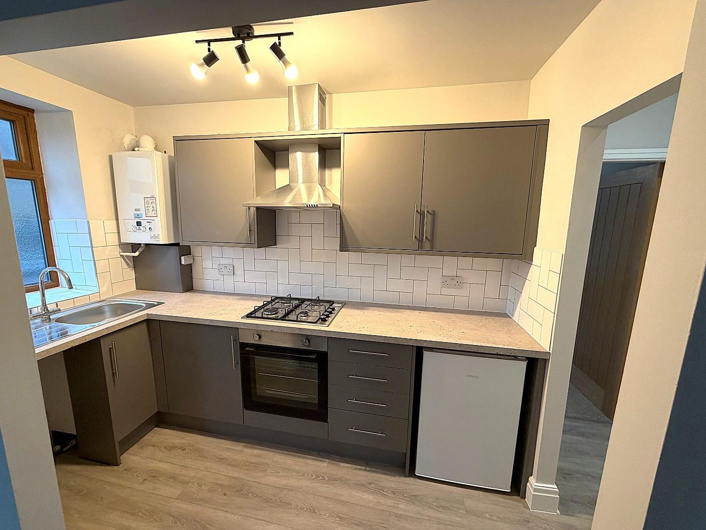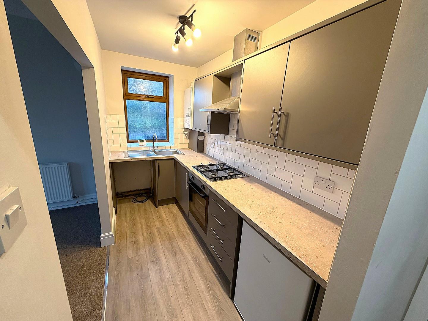 A well presented recently refurbished one bedroom ground floor apartment, located in this substantial Victorian conversion. The property has gas fired central heating and double glazed windows throughout. The property comprises; entrance, lounge & kitchen with appliances including fridge freezer, cooker and washing machine, bedroom and shower room. Outside there are private parking facilities to the rear.