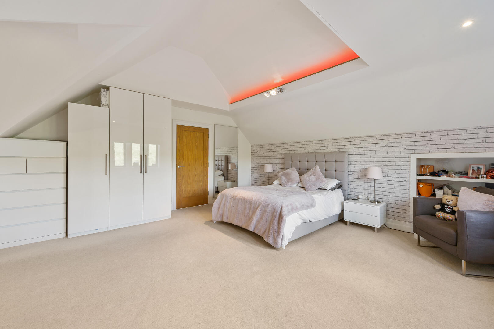 Built in cupboards, window to the rear, ensuite shower room comprising, wc, wall mounted basin, oversized wet room shower, Portuguese limestone tiled elevations and flooring, heated towel rail, window to the rear.