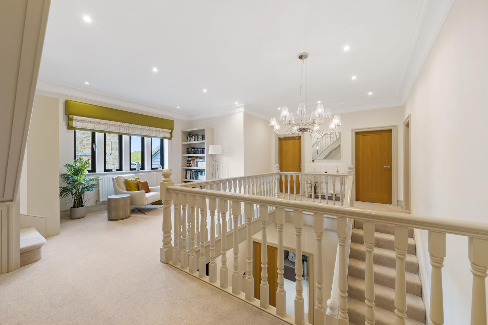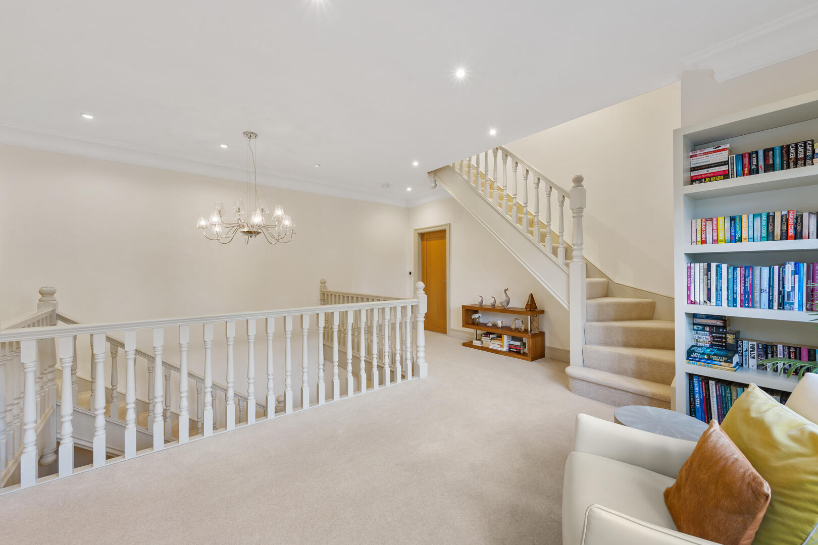 Large galleried landing area with stairs to the 2nd floor plus reading area with bookcases and window to the front.