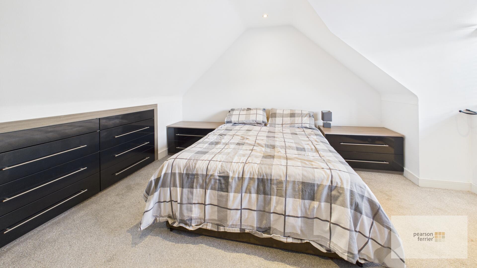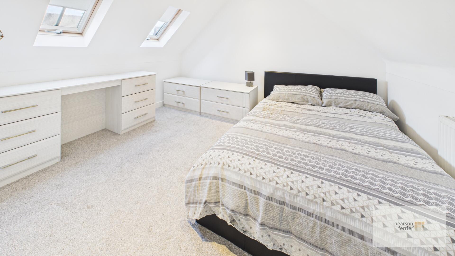 Two double glazed skylights to the front, fitted wardrobes and dresser, down lighting and radiator.