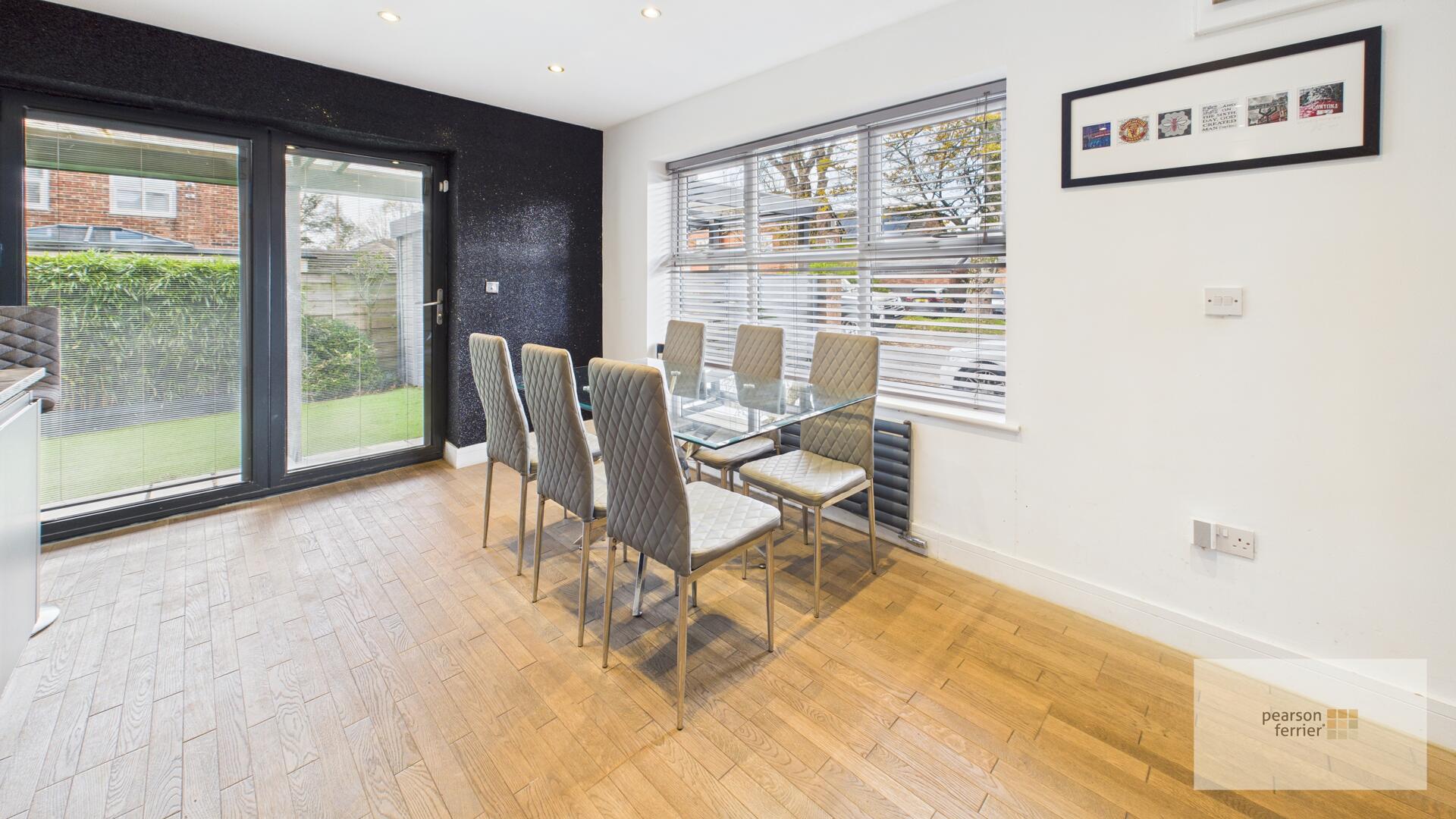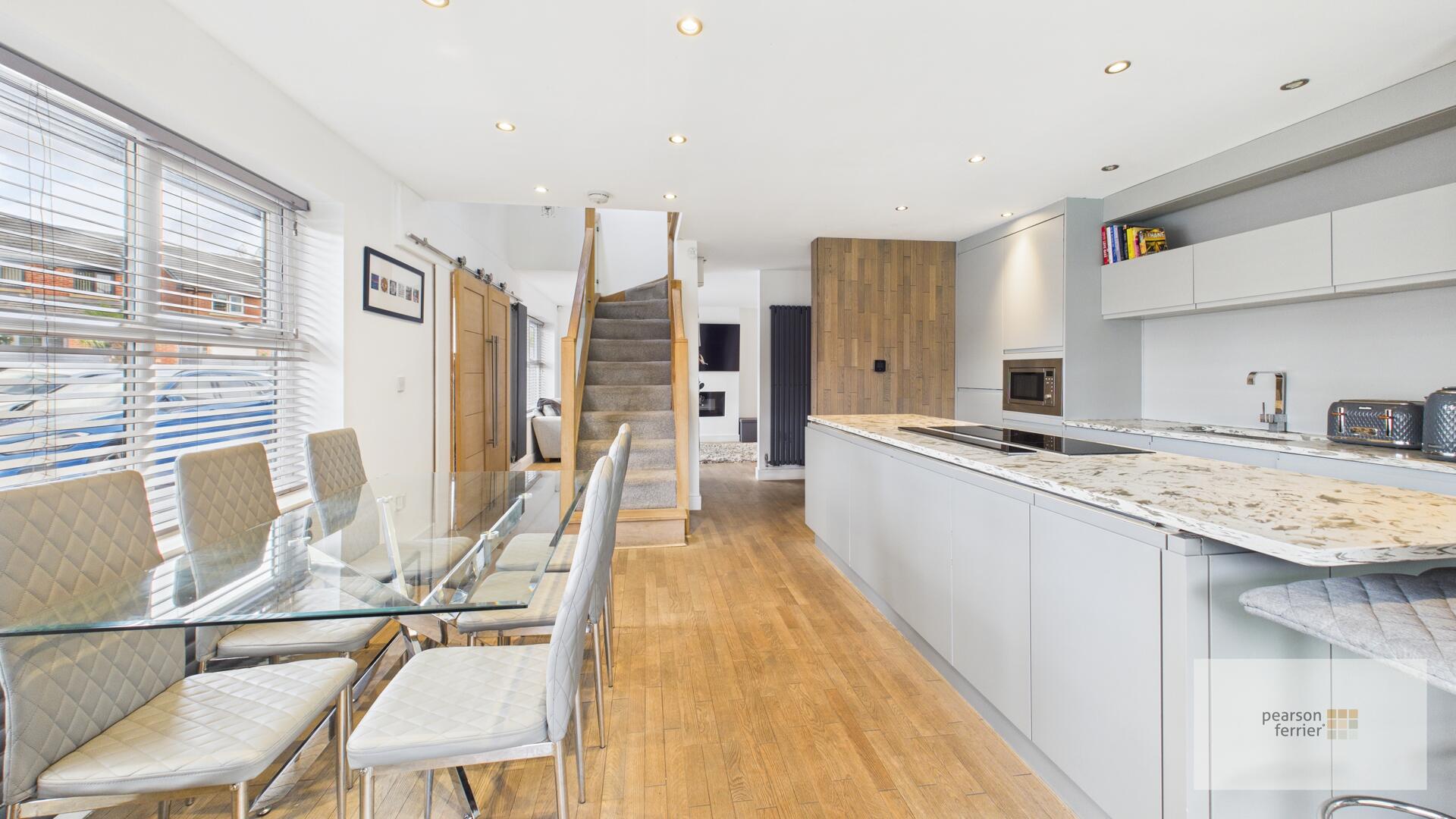 Double glazed window to the front with bi-folding doors to the side leading into the garden. Selection of wall & base units & central Island wit marble work tops to complement, integrated fridge/freezer, microwave, double electric oven & hob with feature extractor fan, down lighting, radiator and stairs to the first floor.