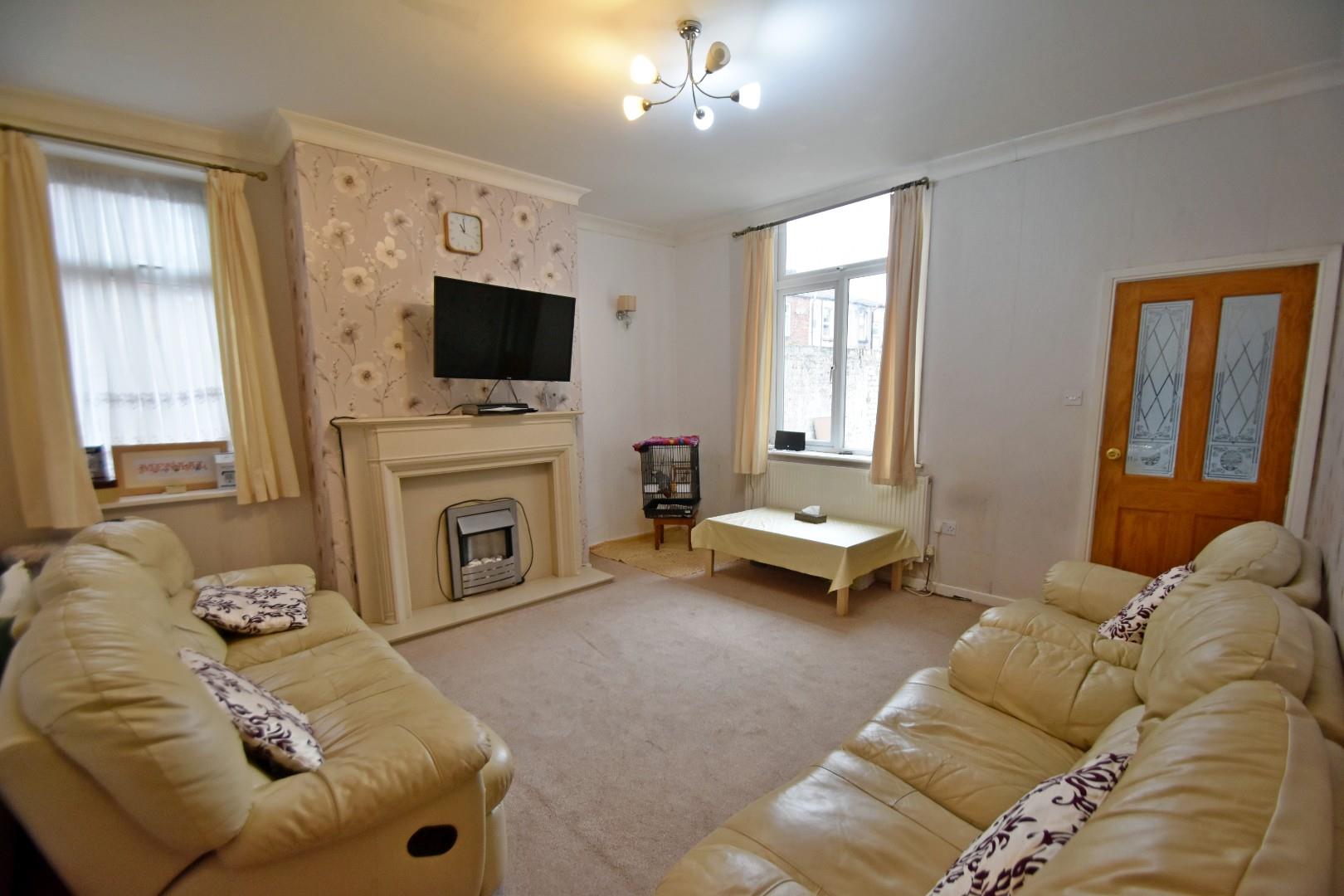 Upvc double glazed windows to the side and rear. Living flame pebble effect electric fire with ornate timber surround. Coved ceiling.
