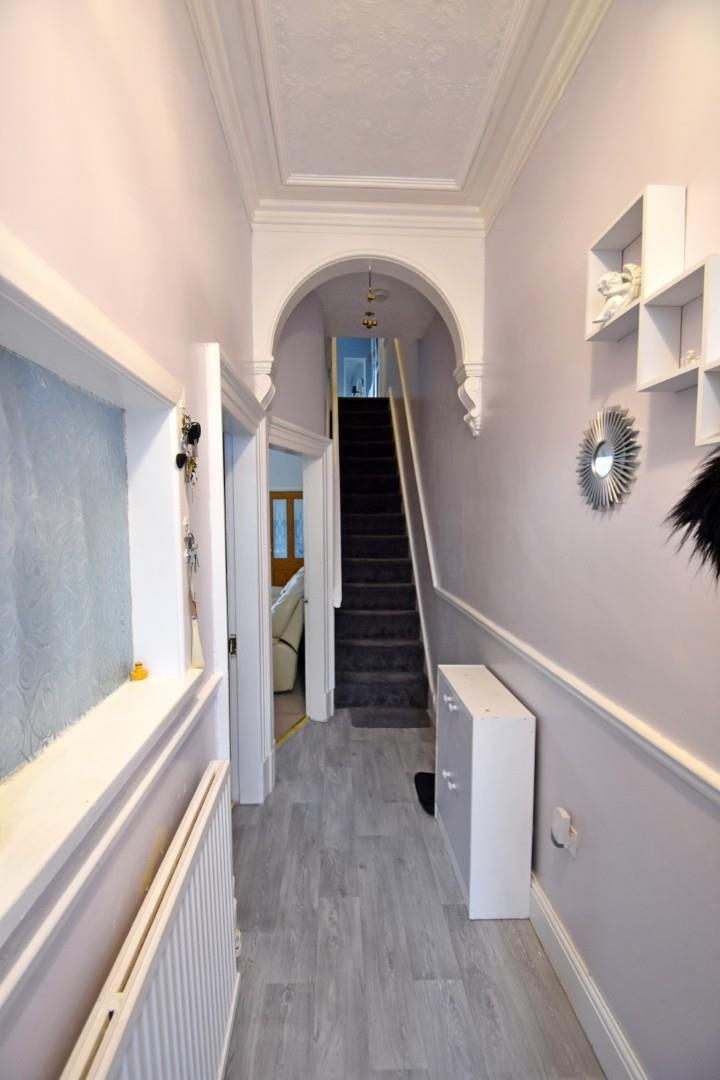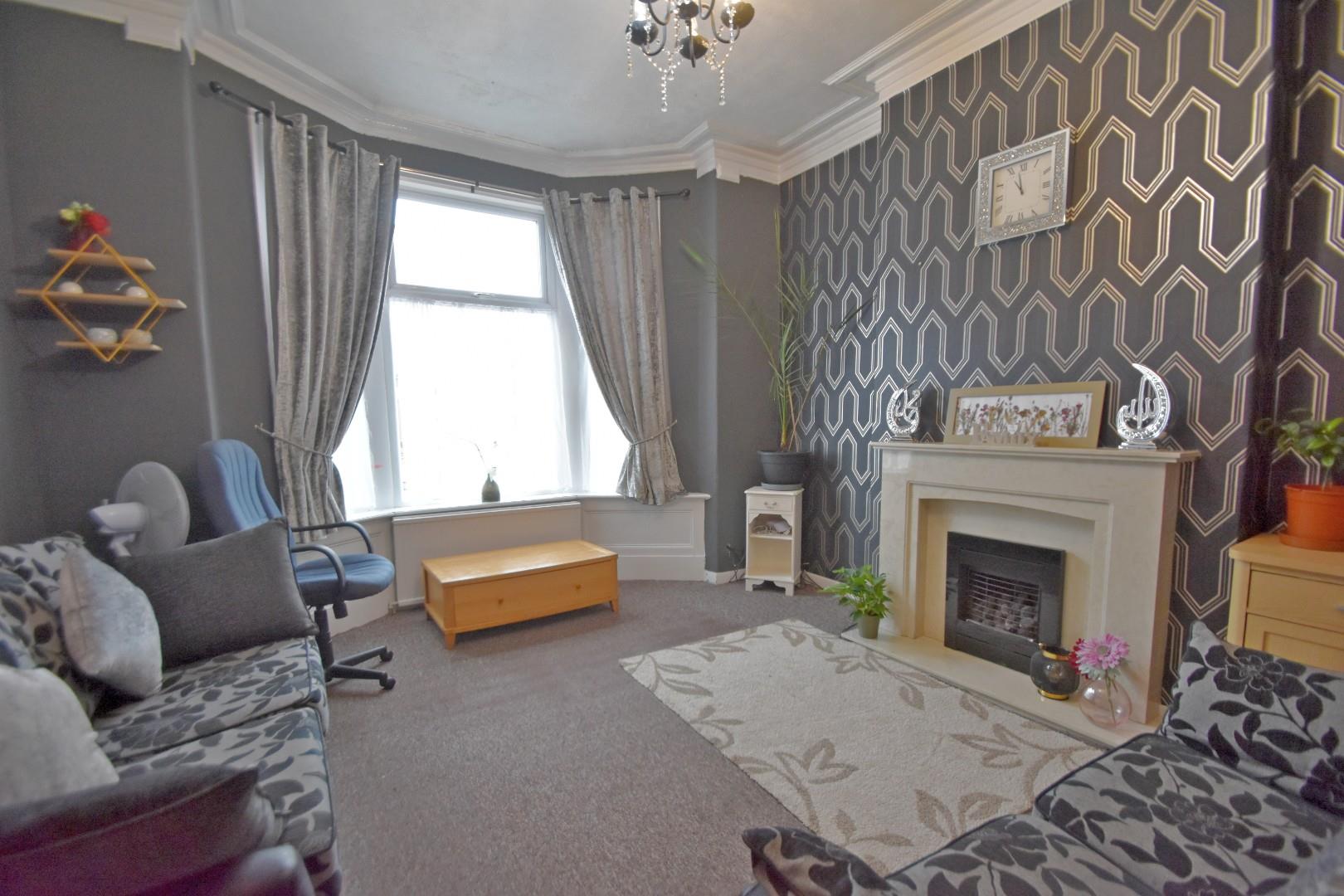 Upvc double glazed bay window to the front. Living flame coal affect gas fire with marble hearth, original coved ceiling.