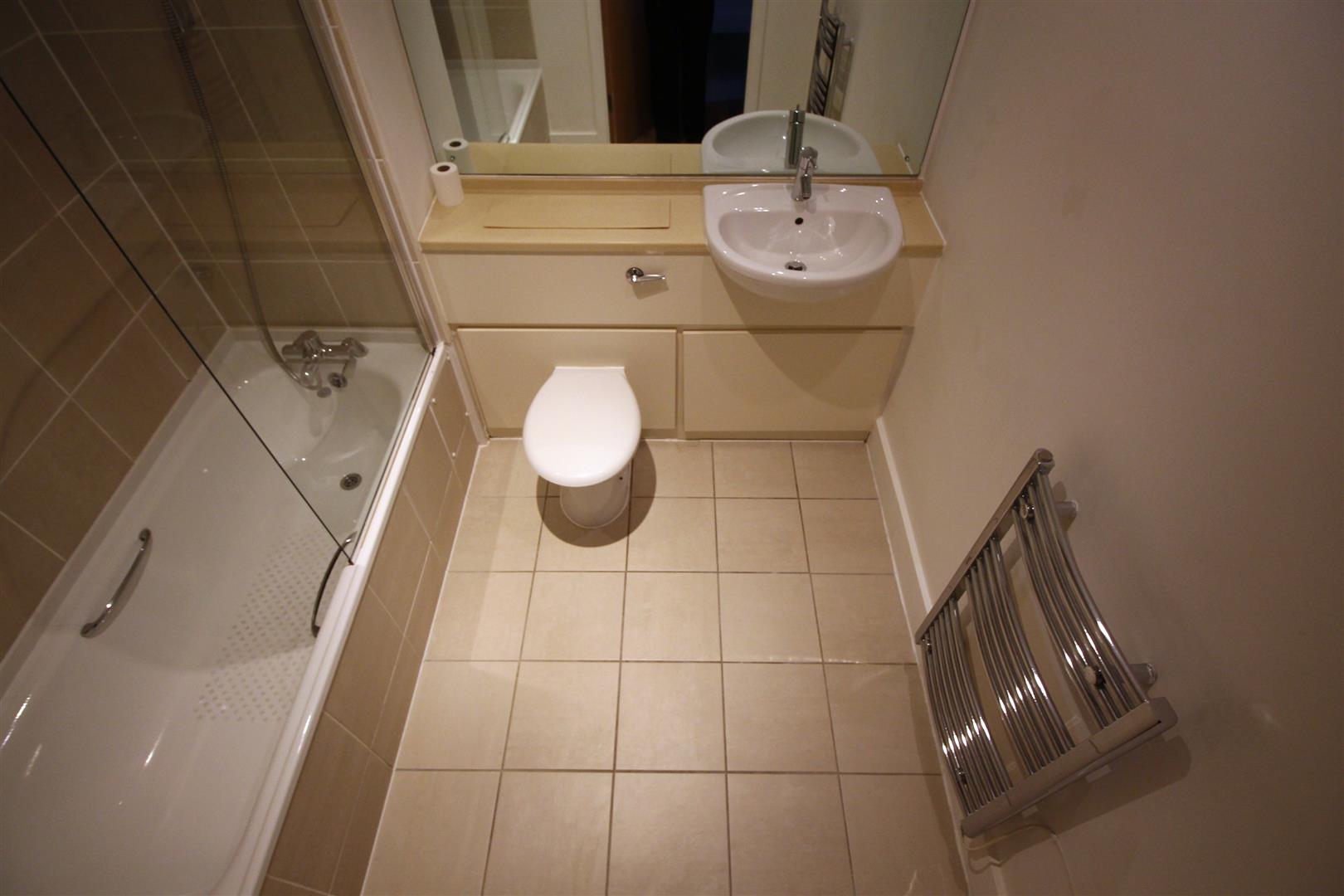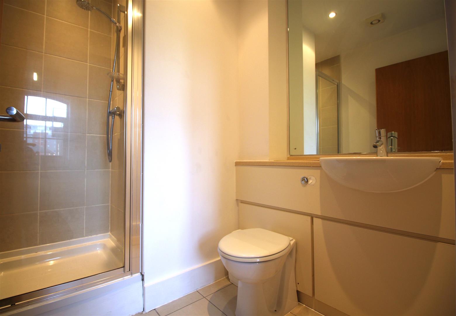 Internally, the apartment itself is bright and spaciously laid out. The open-plan living space is filled with natural light, with direct access to a private balcony- perfect to enjoy during our warmer Summer months! he kitchen is sleek and modern, neatly integrated into the space and fitted with a cooker, microwave, dishwasher, extractor hood and fridge freezer, offering both style and practicality.