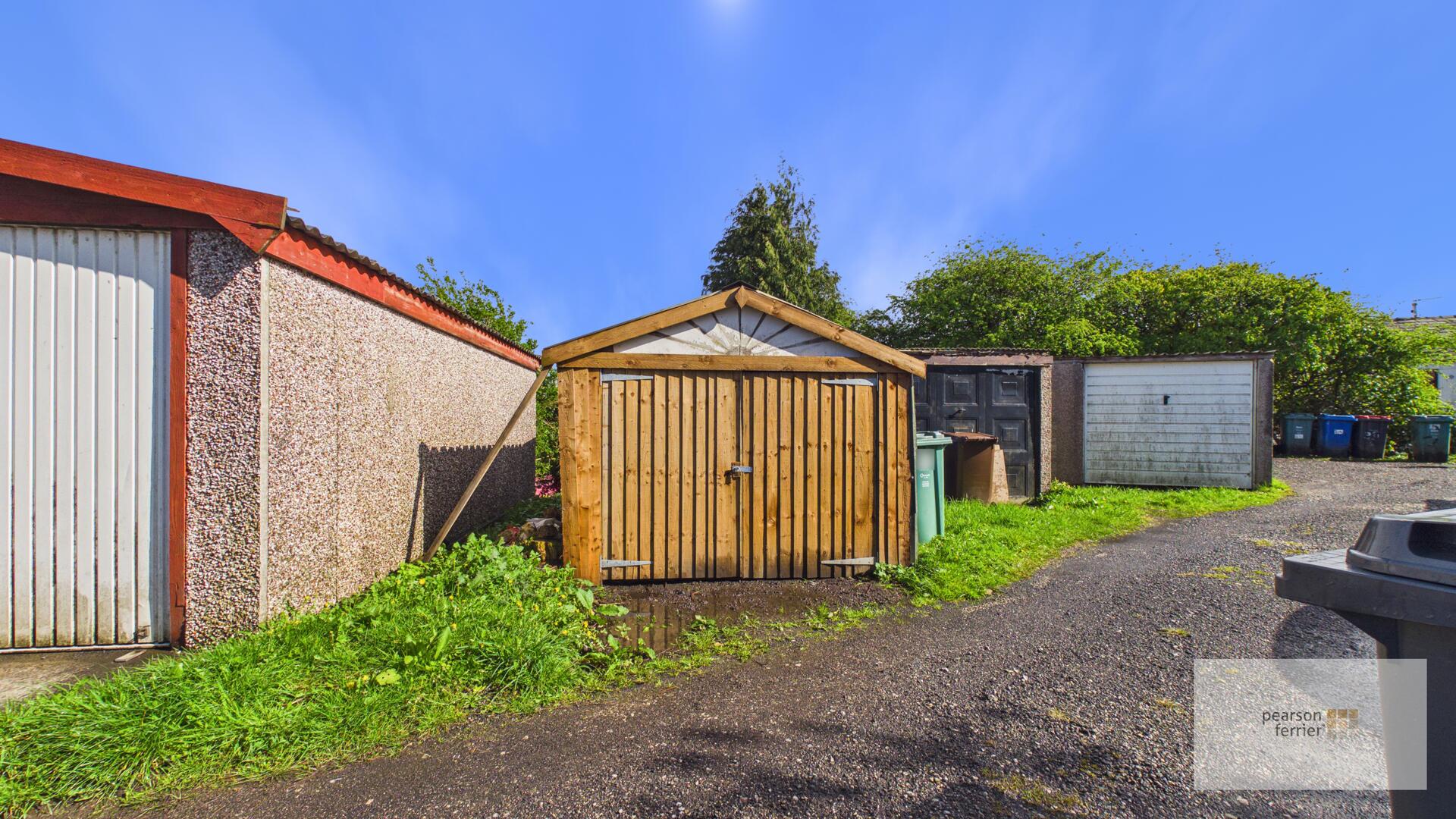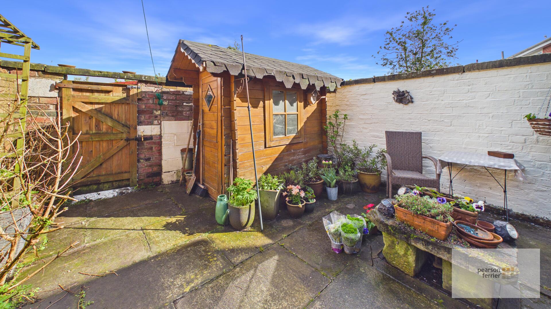 To the rear of the property in an enclosed yard with walled surround, shed and gate access to the rear.