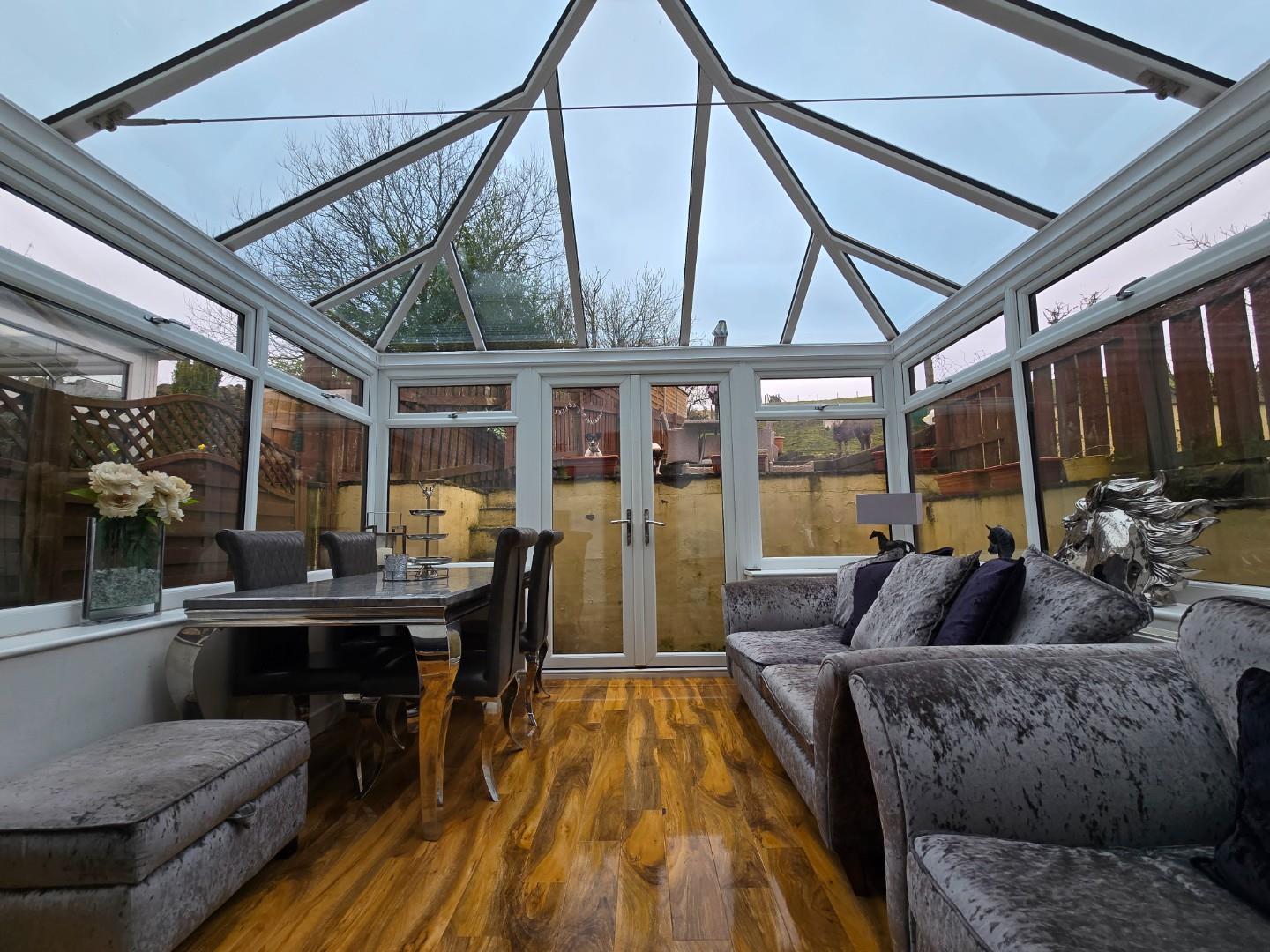 Has a double glazed surround, glass roof, radiator and ceiling light point.