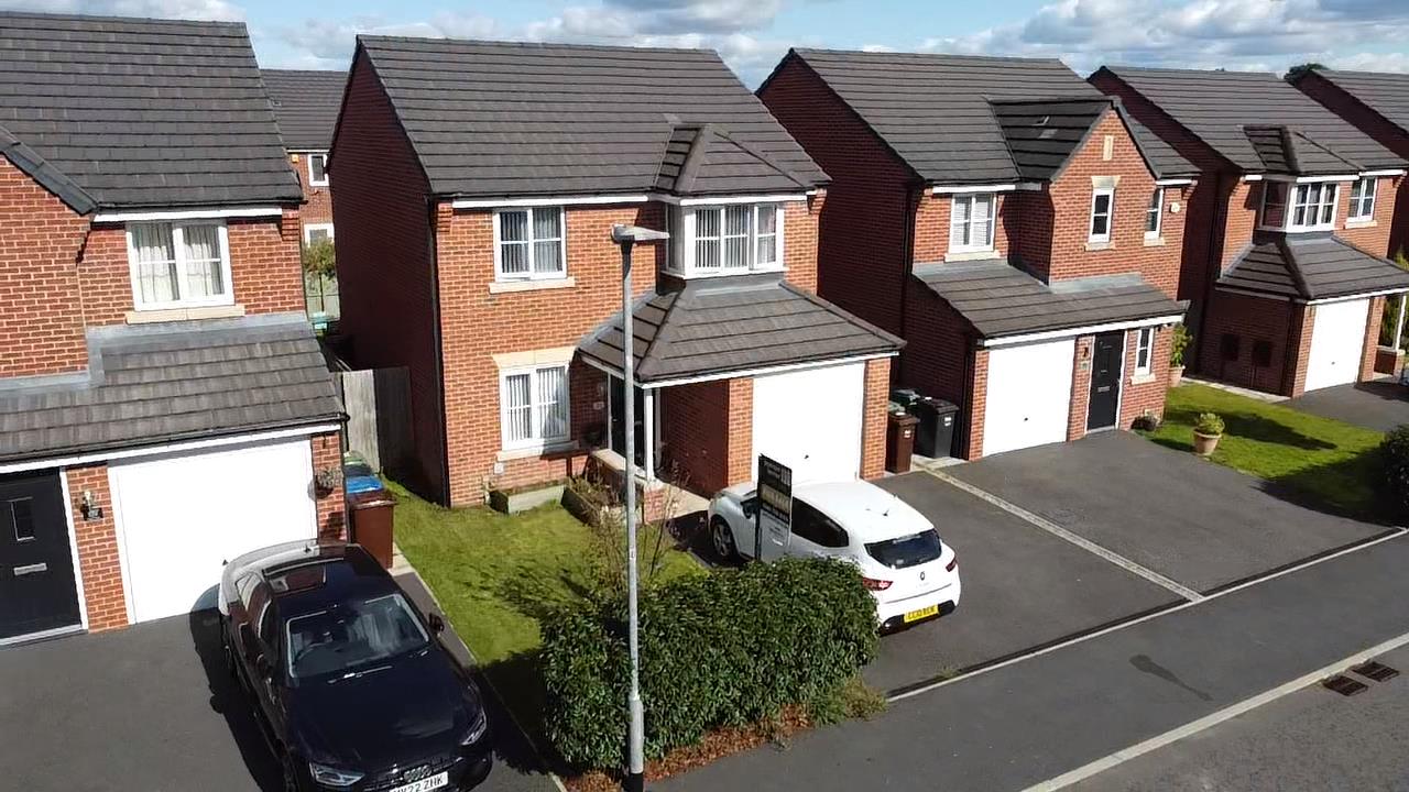 Driveway providing off road parking for one/two cars leading to the attached single garage and lawned gardens to the front and rear.