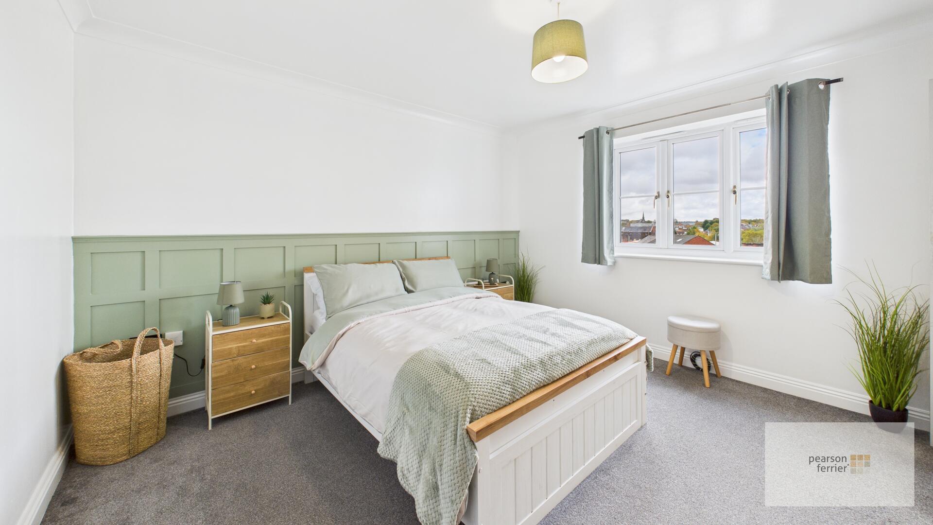 Double glazed windows and door access to the rear with Juliet balcony with views toward Bury town centre, double glazed window to the side, selection of wall & base units with work surfaces to complement, breakfast bar, integrated fridge & freezer, electric oven and hob with stainless steel extractor hood over and plumbed for washing machine. sink & drainer, tiled splash back, down lighting, television point and tow wall mounted electric heaters.
