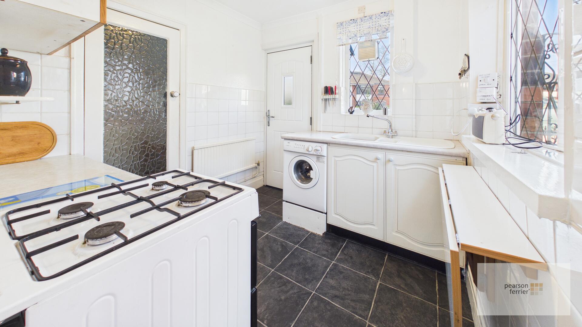 Double glazed window and composite door access & double glazed window to the side, selection of wall & base units with work surfaces to complement, plumbed for washing machine, space for cooker, one & half sink & drainer, tiled splash back ceiling light point and pantry.