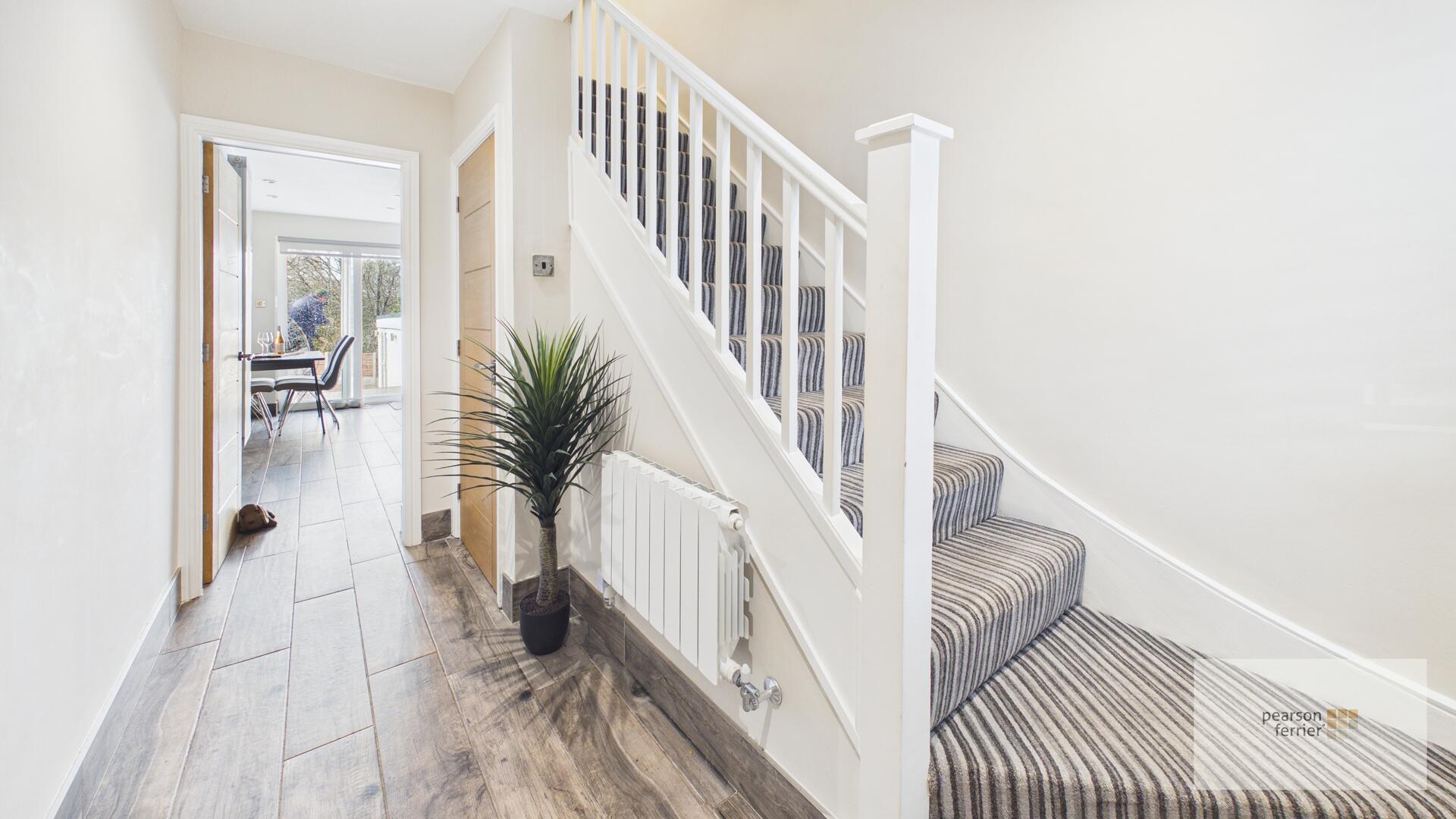Composite door and double glazed window to the front, under floor heating, built in storage, down lighting, radiator and stairs to the first floor.