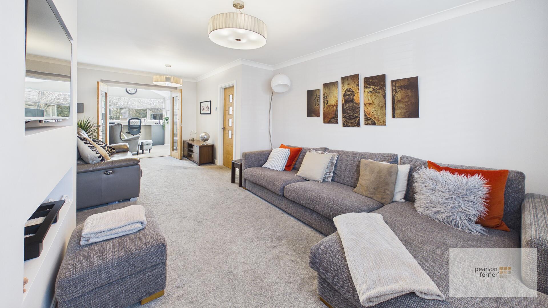 Double glazed window to the front, media wall, two ceiling light points, radiator and double doors lean into ....