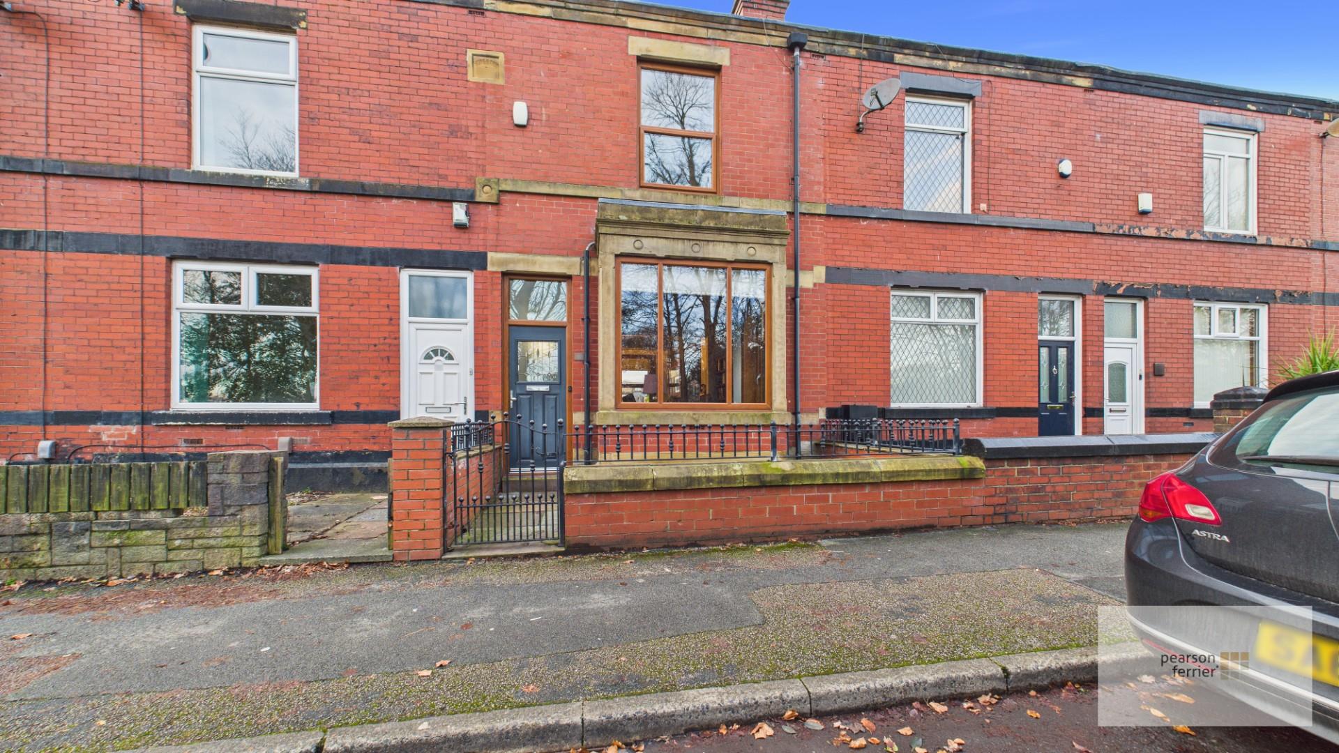 The property has a garden forecourt with iron railing fencing and a neatly presented rear patio/yard.