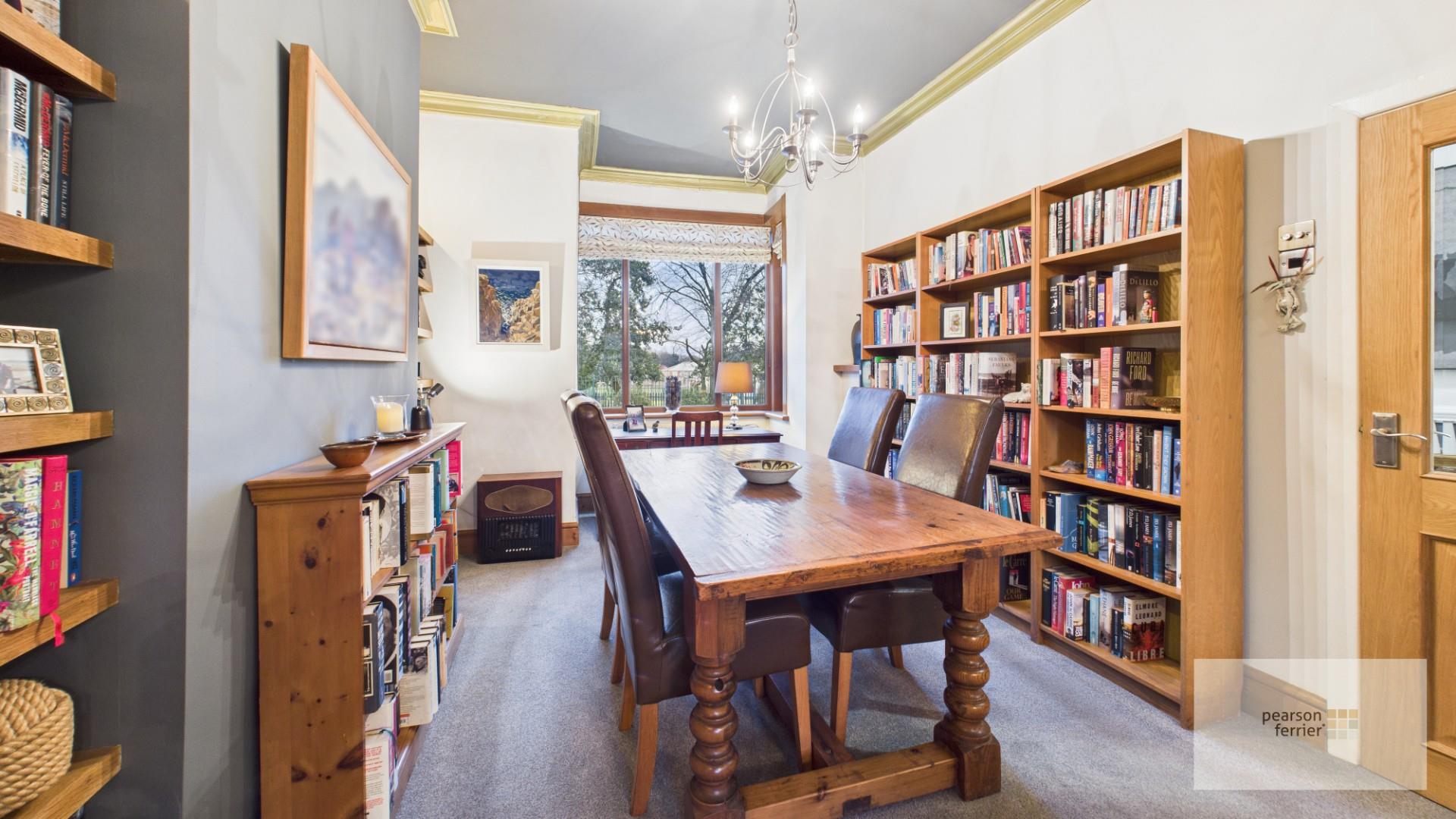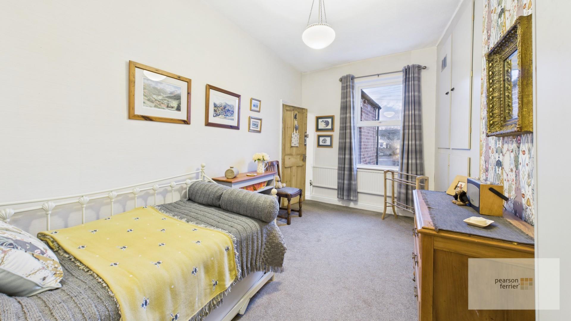 Impressive room with square bay window to the front and views over Hoyles Park. Originally two rooms and converted during the renovations. Built in bookshelves, stone fireplace housing a woodburing stove, original covings and centre rose. Window to the rear so light and airy.