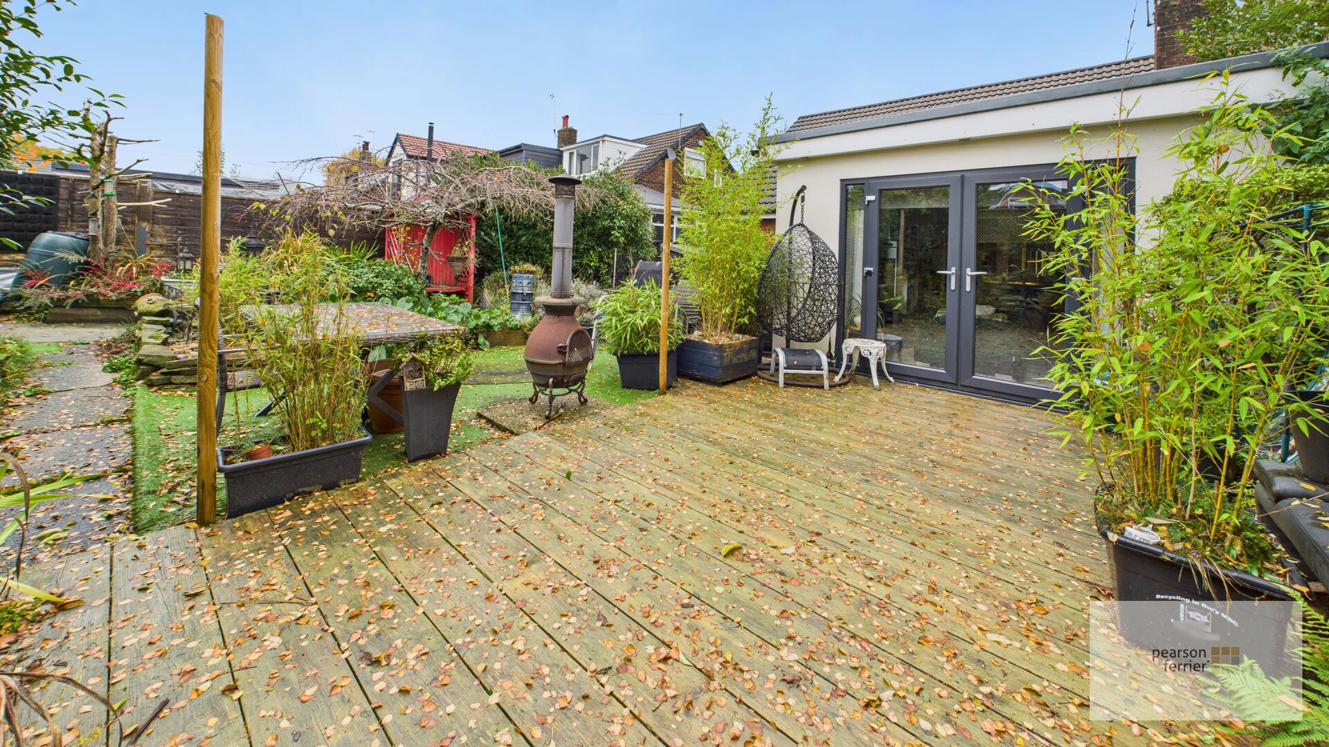To the rear is a landscaped gardens with artificial grass, decked patio, mature planted borders and fence surround.