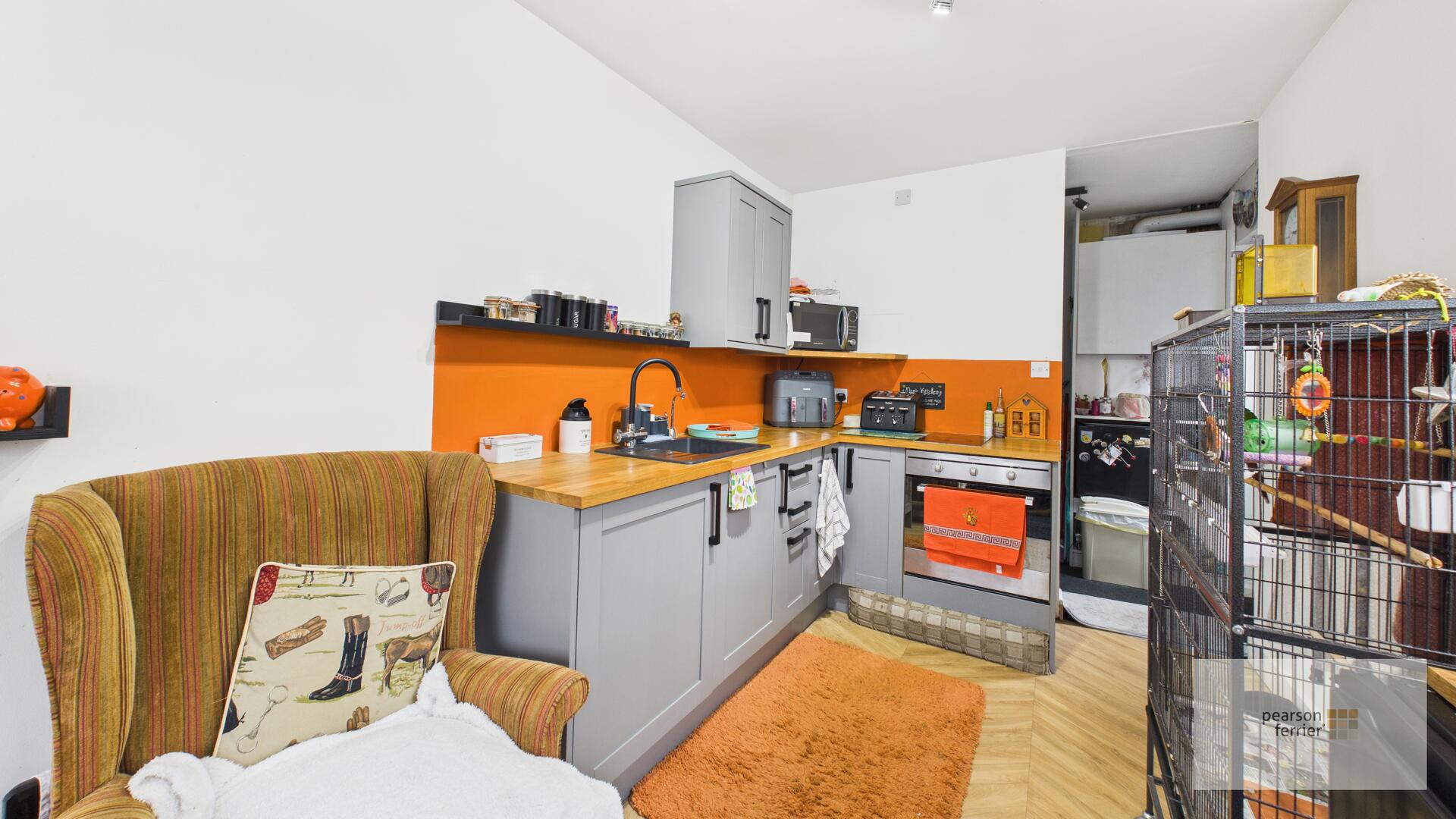 Double glazed French style doors to the rear, two double glazed windows to the side and double glazed skylight, selection of wall & base units with work surfaces to complement, integrated dishwasher, washing machine, double electric oven & hob with extractor hood over, space for fridge/freezer. sink & drainer, ceiling light points, feature radiators.
