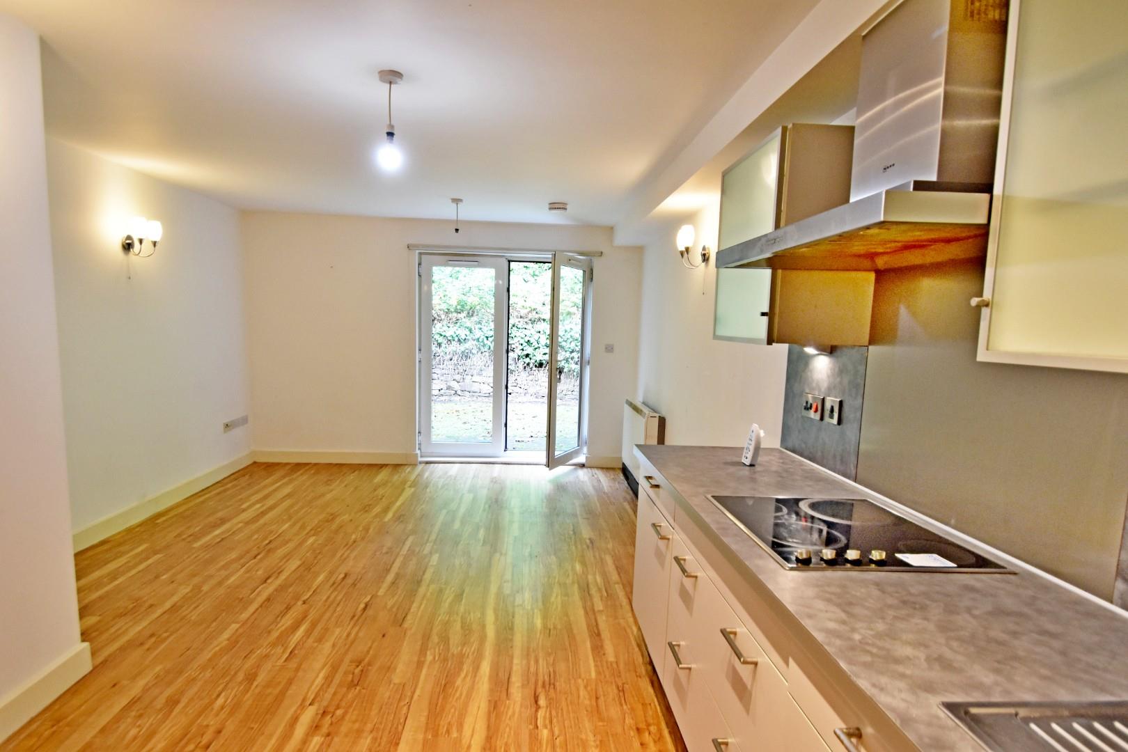 Open plan kitchen accommodation, modern kitchen fitted with integrated appliances with french door access to rear communal garden area.