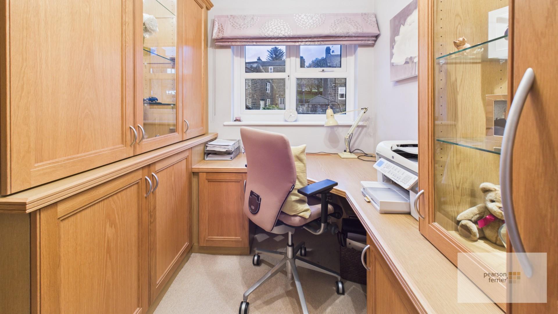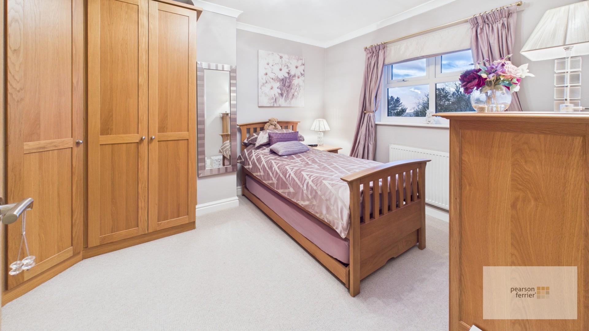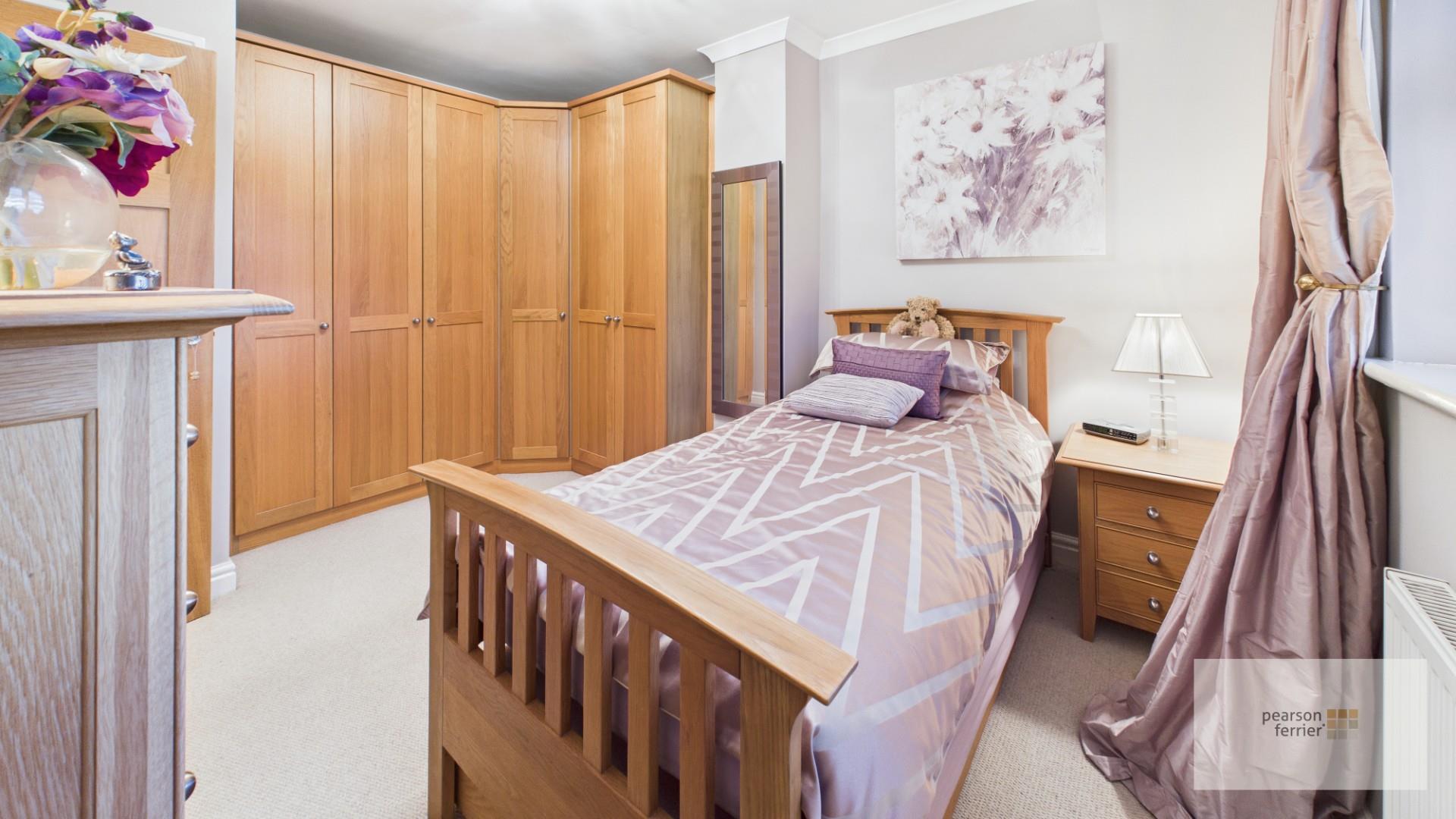 With fitted wardrobes in oak finish. Sash style window to the front.