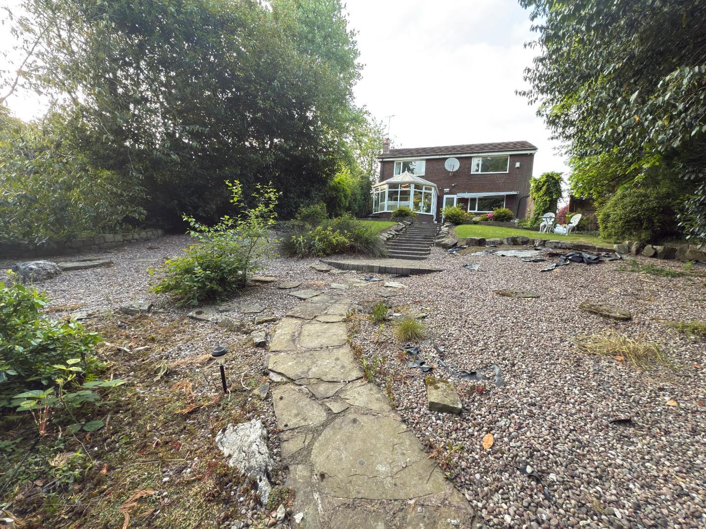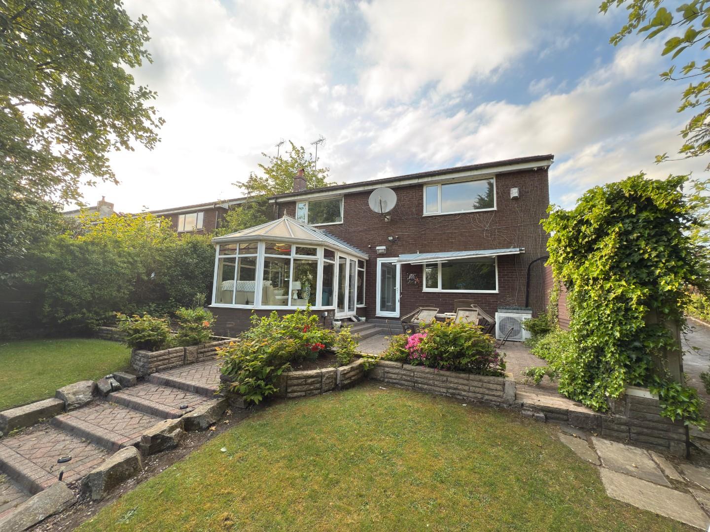 A most unusual opportunity. A substantial FREEHOLD detached family home with the addition of a one bedroom annex with a separate entrance and with gardens extending to around 100 meters in length. The property is located on Owlerbarrow Road close to the centre of Walshaw, with an open aspect to the rear and having fabulous countryside views. The current owner has just been granted permission for the construction of a three bedroom detached property within the gardens, so this really does provide an exciting opportunity for a large family to create a living environment of their choice. The current house has accommodation on three levels and is very well presented internally. With combination gas fired central heating and upvc double glazing the accommodation briefly comprises: Entrance hall with tiled flooring that extends into the kitchen/family room, bedroom four and bedroom five (currently used as an additional sitting room), guest cloakroom, the kitchen/family room with central island, short staircase leading down to the main lounge with conservatory off, and short staircase leading up to the principal bedroom accommodation (the main with ensuite and air conditioning) and main four piece bathroom.