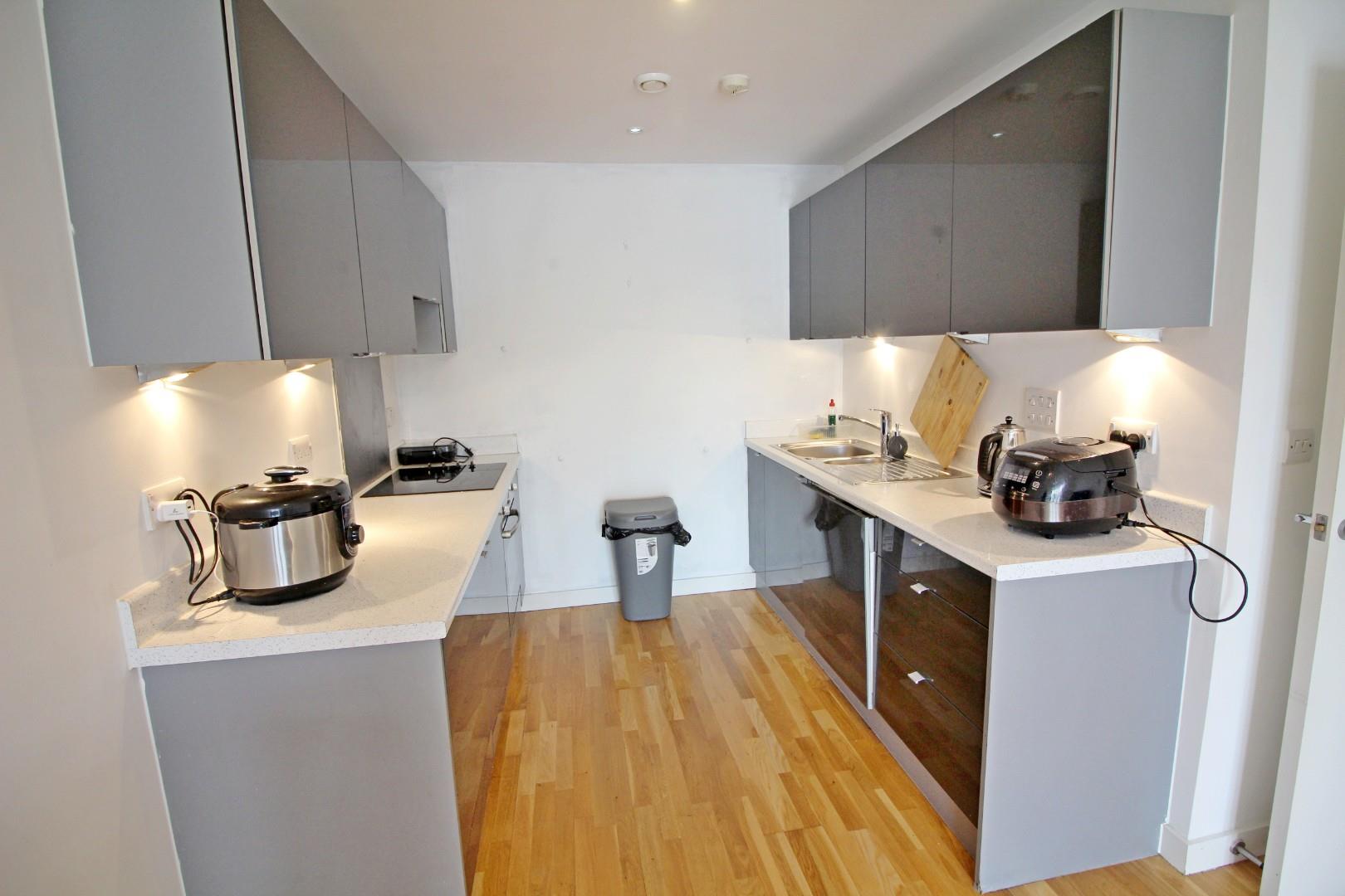 With cupboards housing the hot water tank and washing machine facilities.