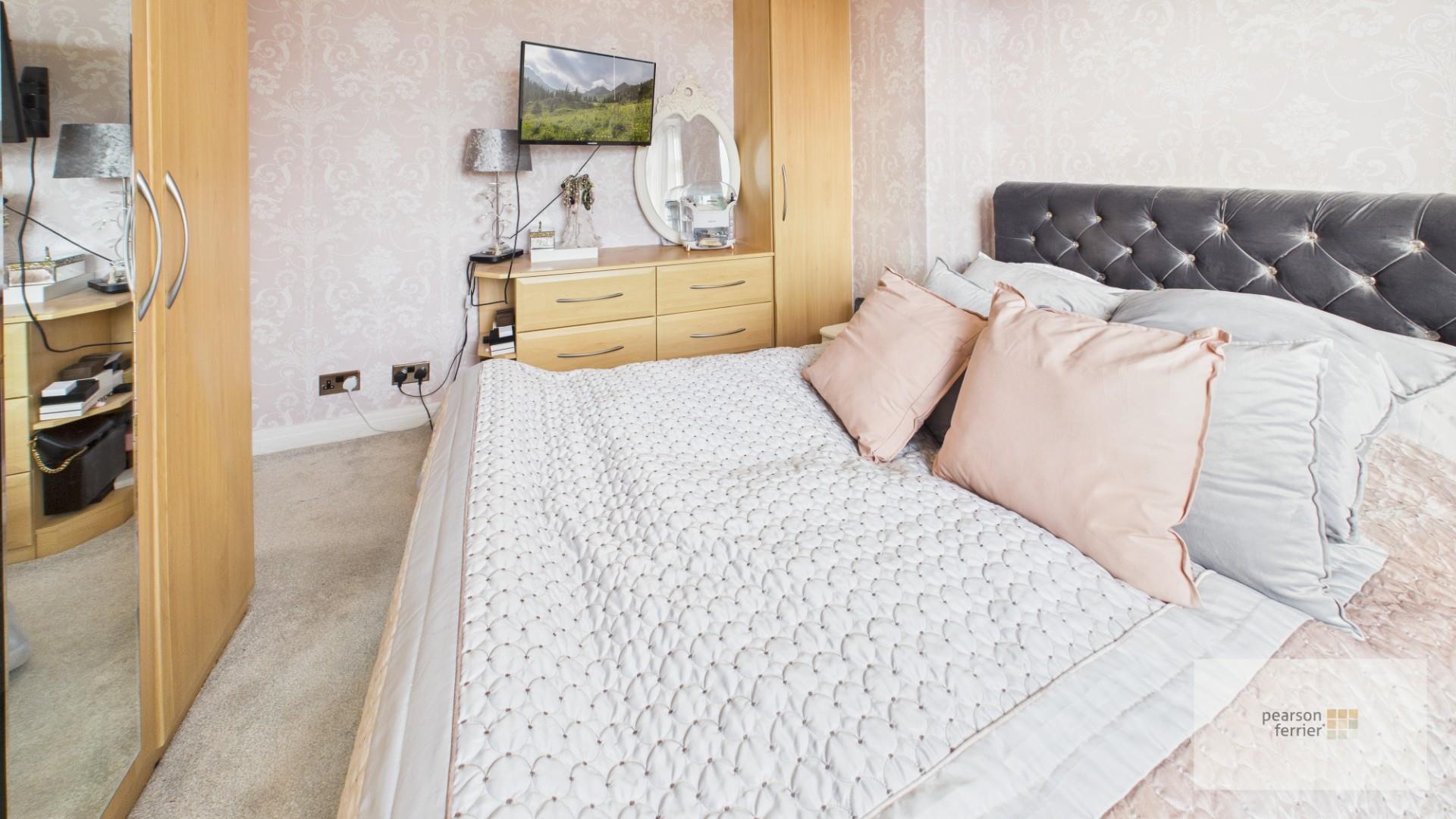 Fitted wardrobes and upvc double glazed bay window to the front.
