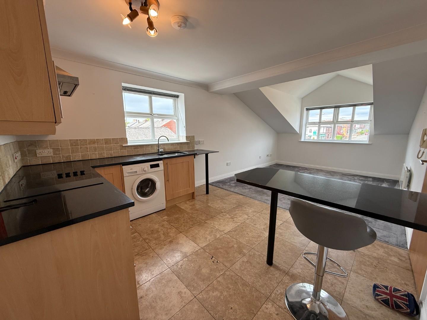 Double glazed window to the side, selection of wall & base units with granite work surfaces and breakfast bar to complement, integrated electric oven & hob with stainless steel extractor hood over, plumbed for washing machine space for American style fridge/freezer, ceiling light point and electric heater.