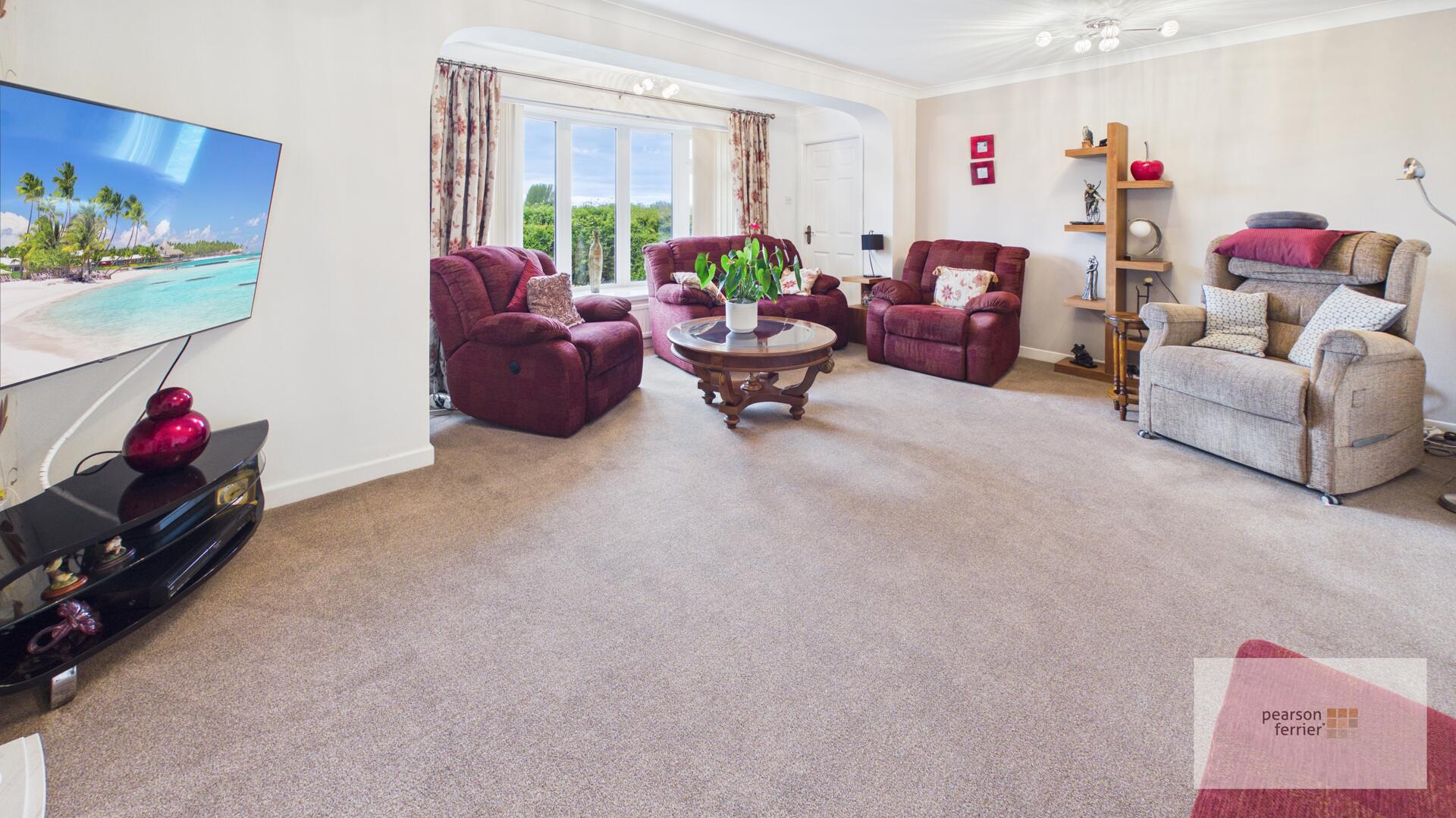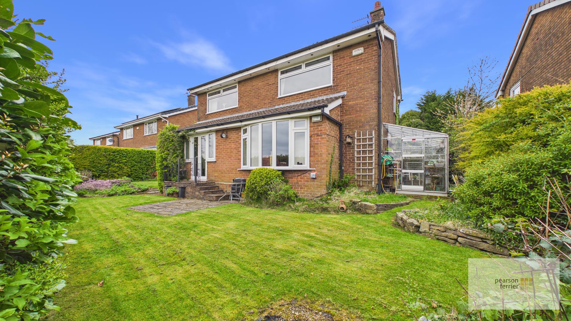 To the rear of the property is mainly laid to lawn, with paved patio, greenhouse and mature planted borders.