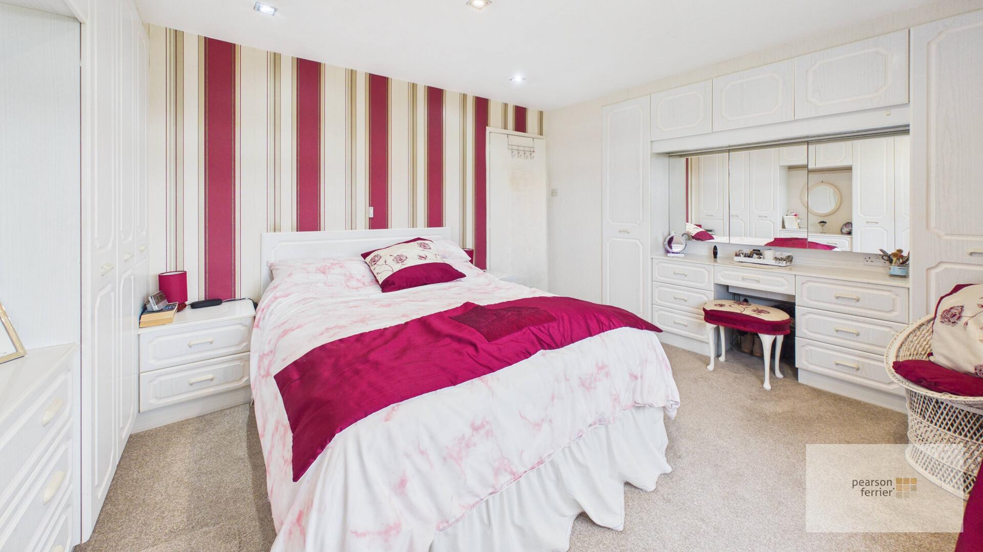 Double glazed window to the rear with open aspect views, fitted wardrobes & dresser, ceiling light point and radiator.
