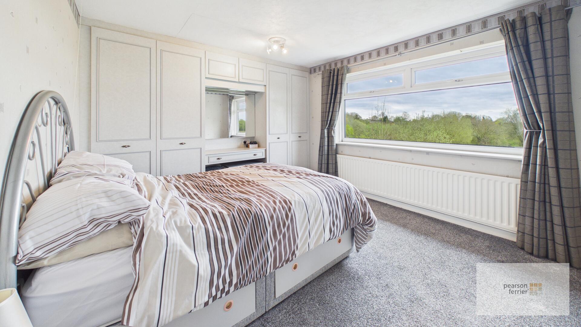Double glazed window to the rear with open aspect views, fitted wardrobes, ceiling light point and radiator.