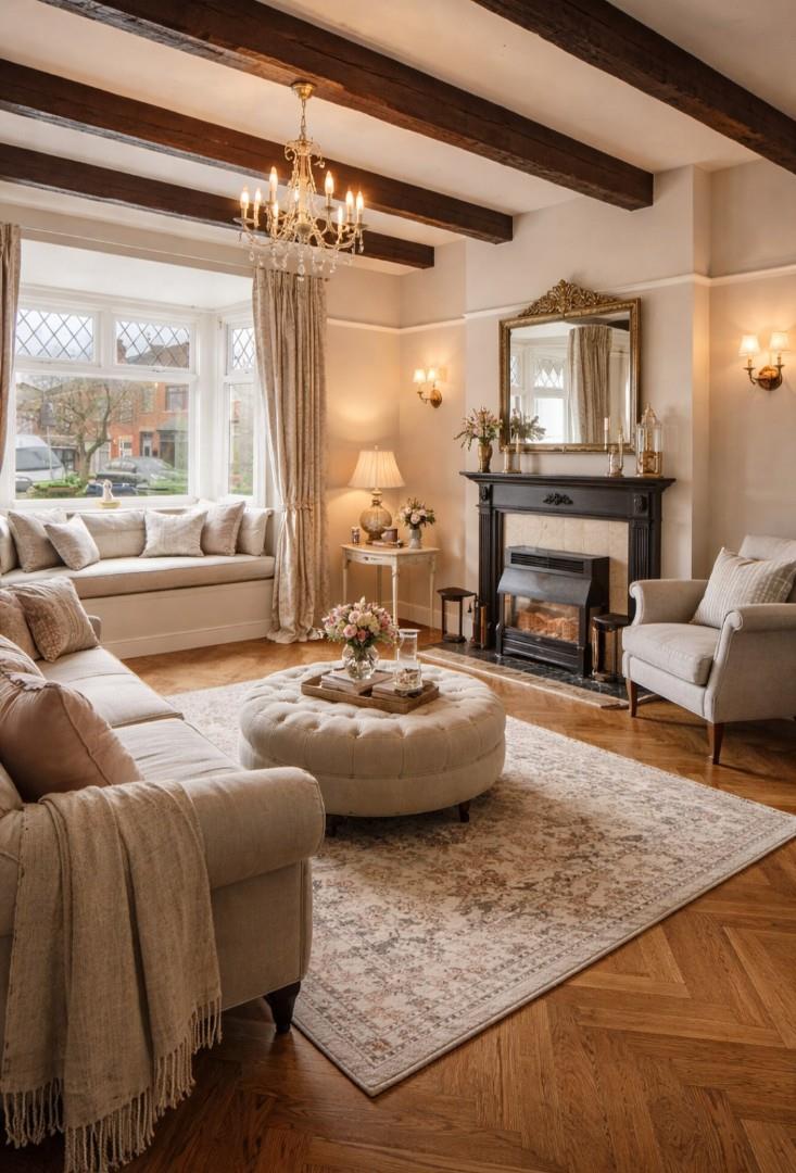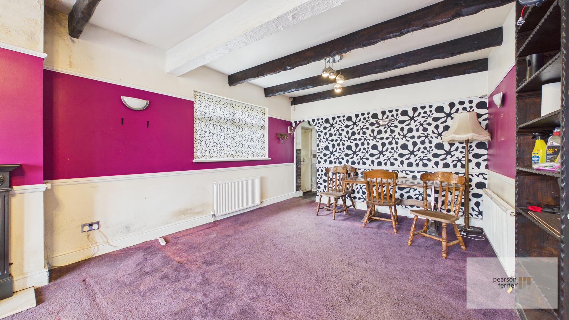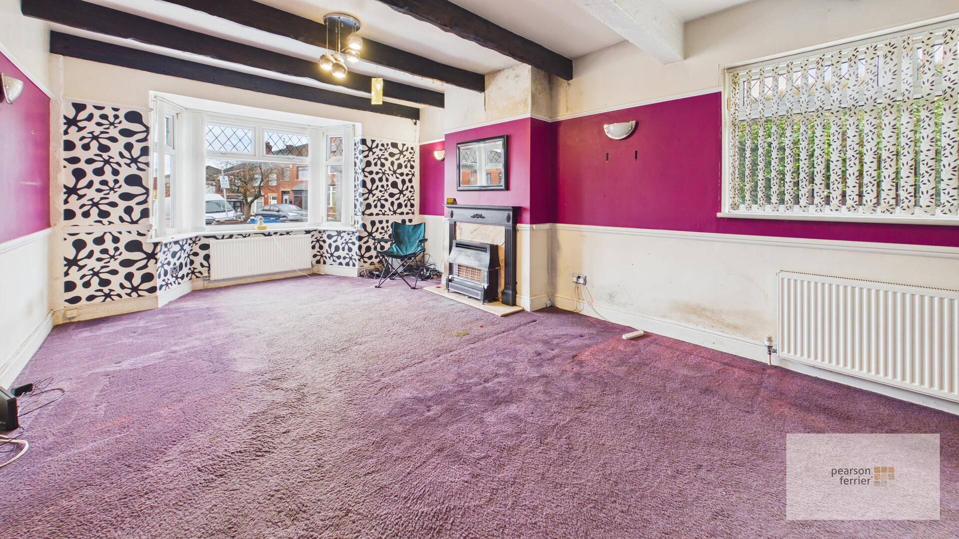 Double glazed bay window to the front, beamed ceiling, gas fire with feature surround, two ceiling light points, wall lights and radiators.