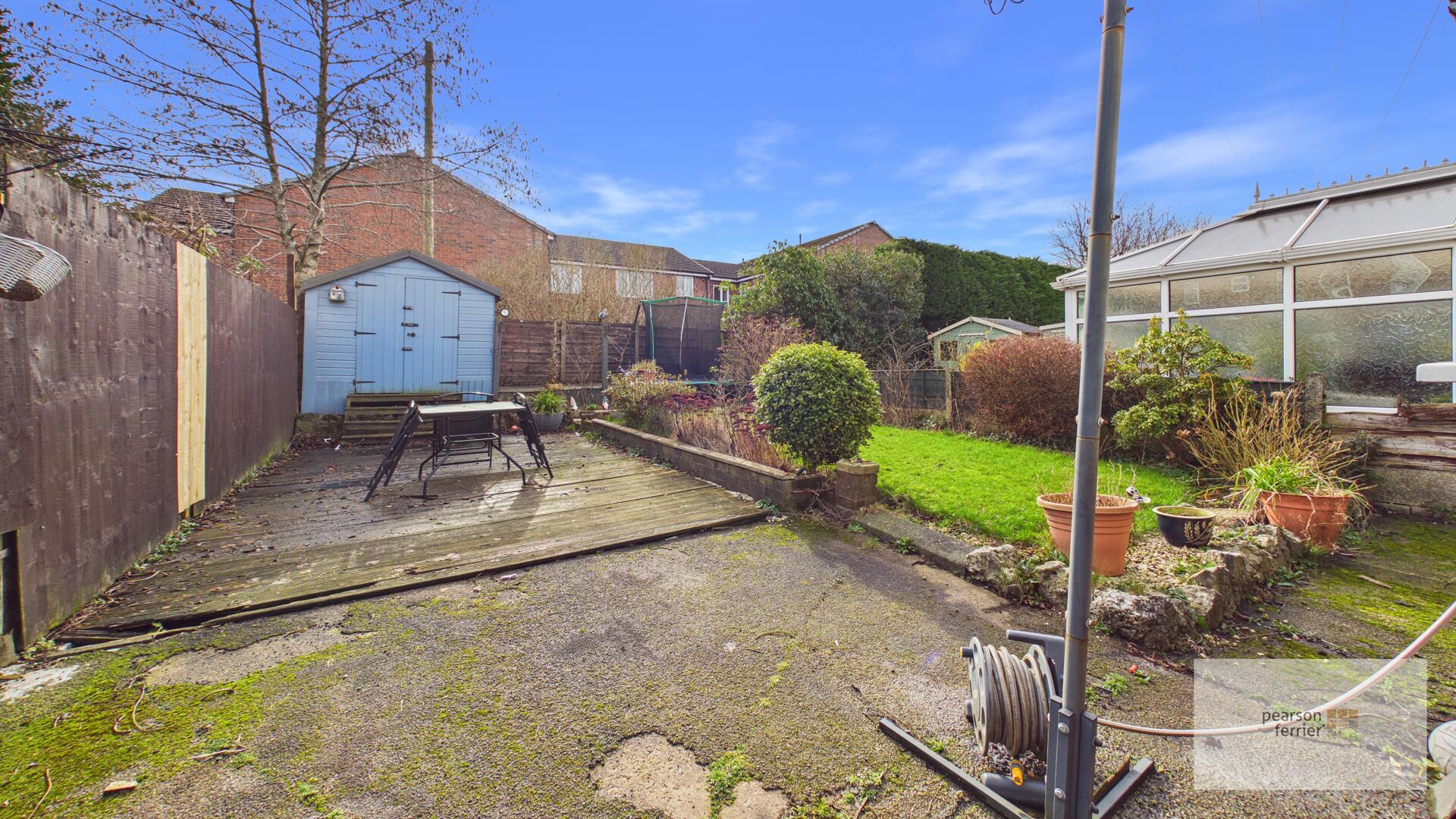 To the rear of the property is mainly laid to lawn with decked patio, fence surround, shed, planted borders and double gate access to the front.