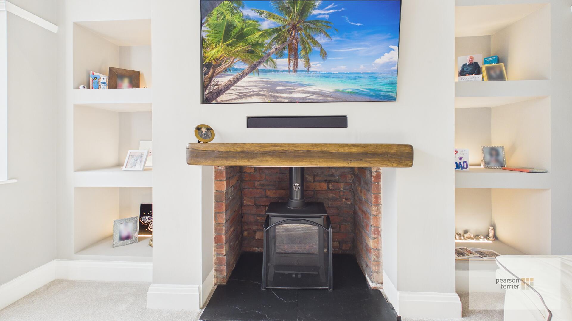 Double glazed bay window to the rear, wood burning stove, ceiling light point and radiator.