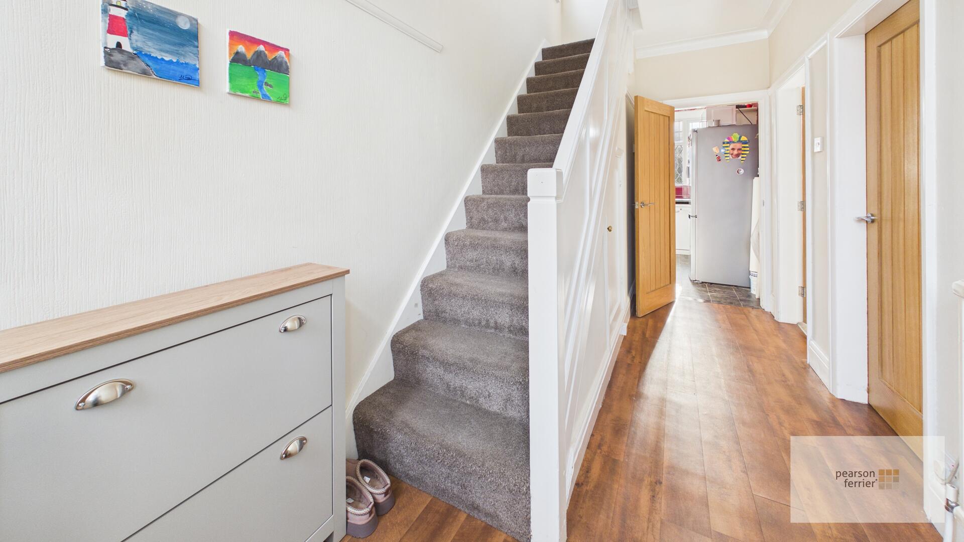Upvc door access to the front, ceiling light point, radiator and stairs to the first floor.