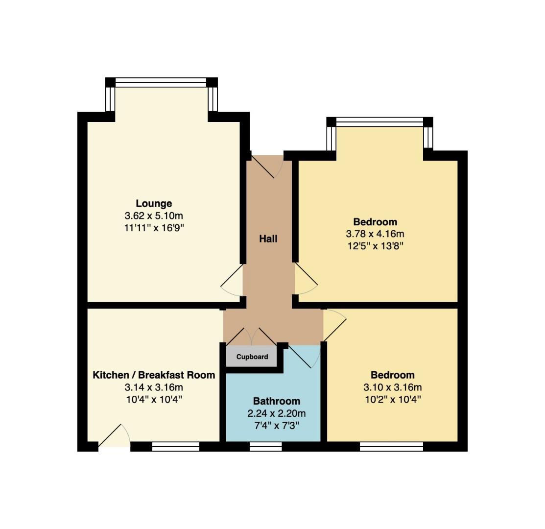 Double glazed bay window to the front, fitted wardrobes and dresser, ceiling light point and radiator.