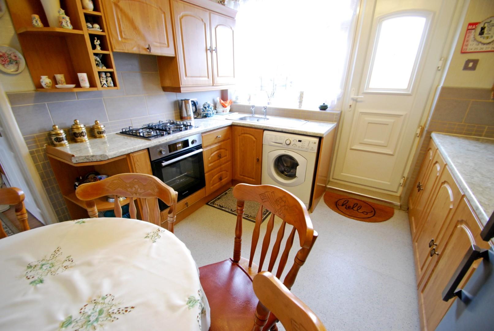 Double glazed window and door access to the rear, selection of wall & base units with work surfaces to complement, integrated electric oven & gas hob, plumbed for washing machine, space for fridge/freezer, stainless steel sink & drainer, tiled splash back, strip light and radiator.