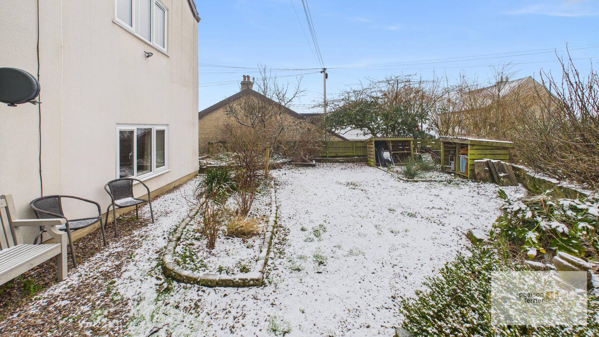 There is a garden forecourt then a larger side garden and patio area with attached garage to the rear.