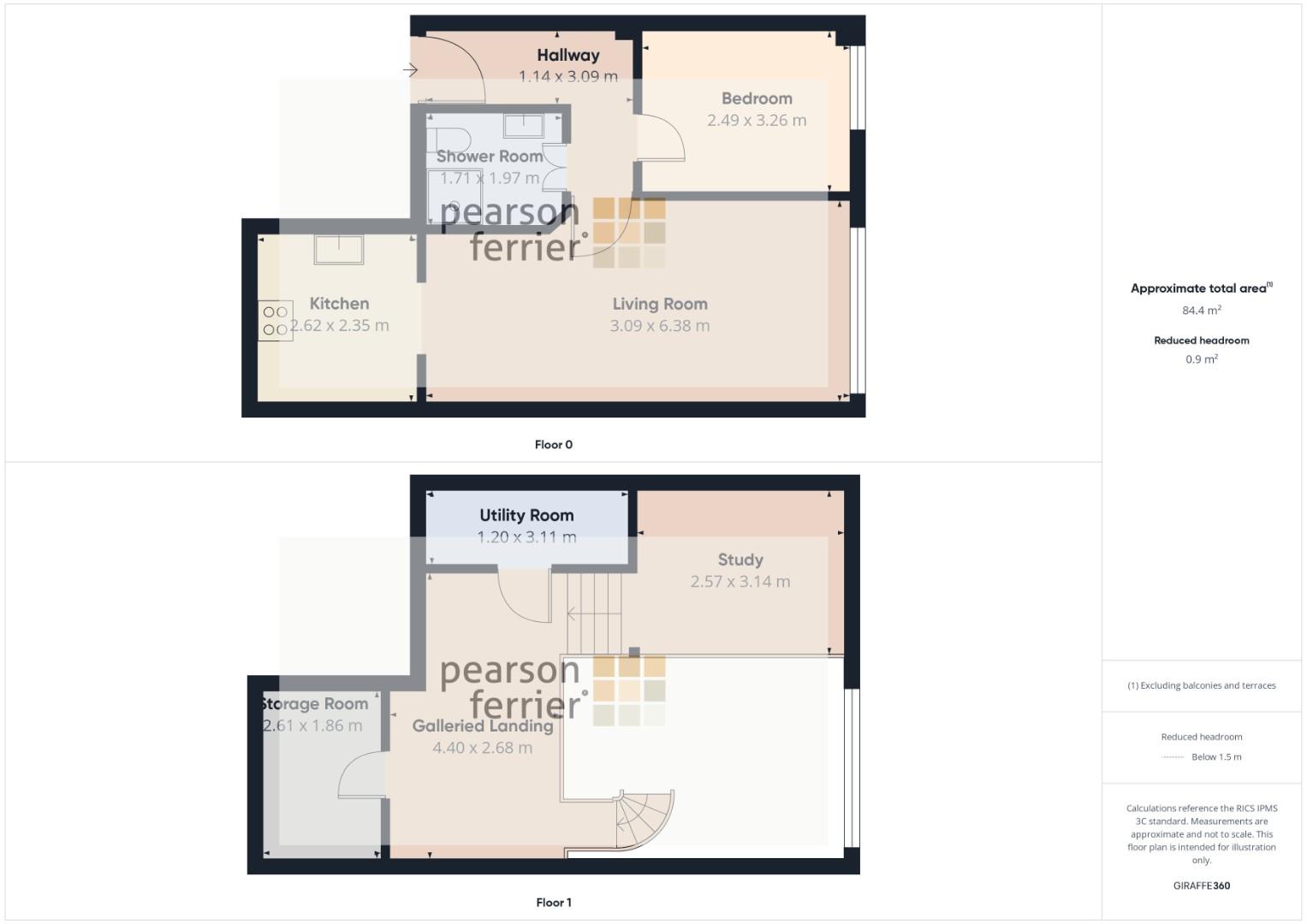 Galleried area with outlook over the living room, built in storage closet, utility and boiler room, raised platform used as a bedroom.