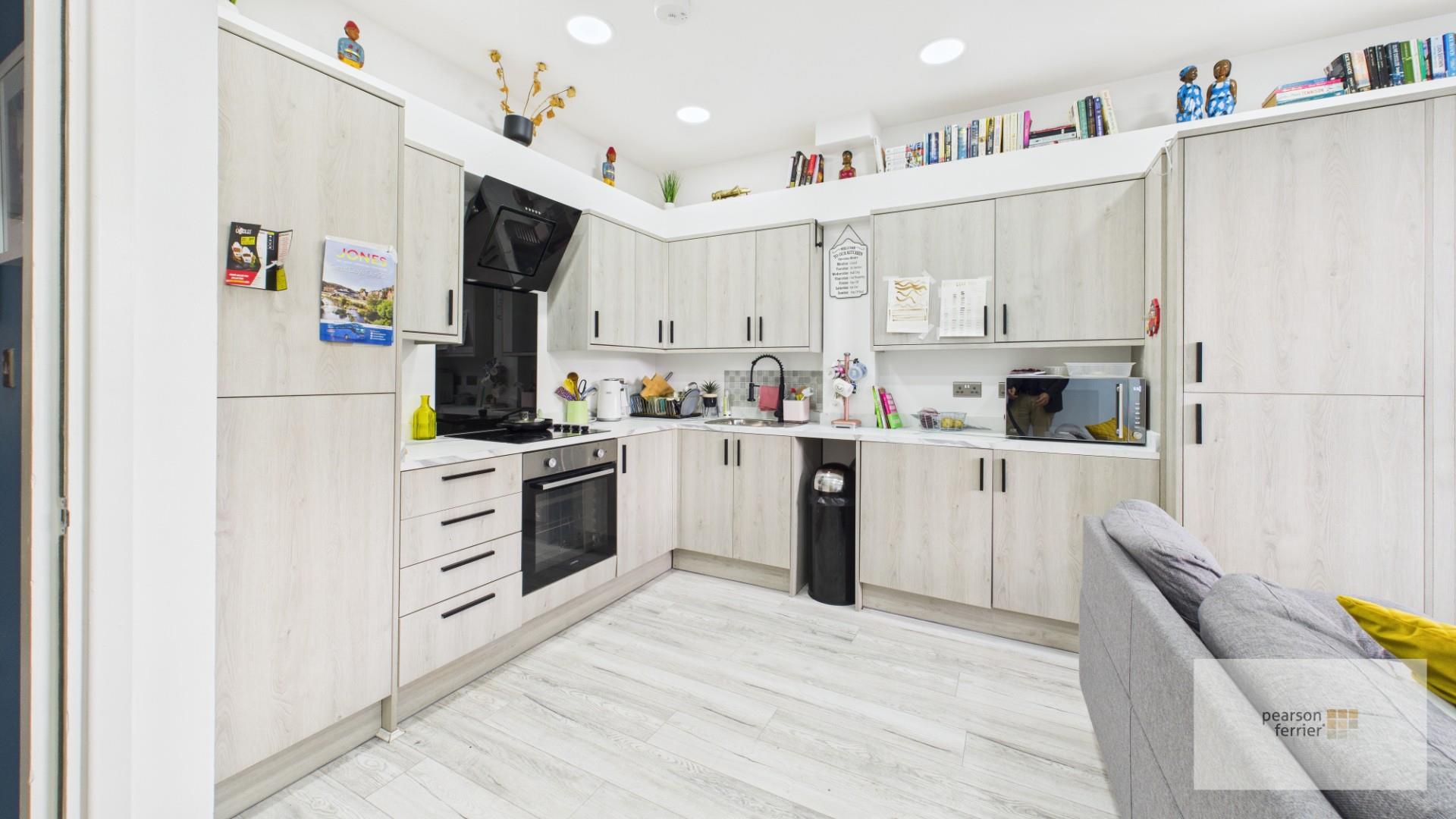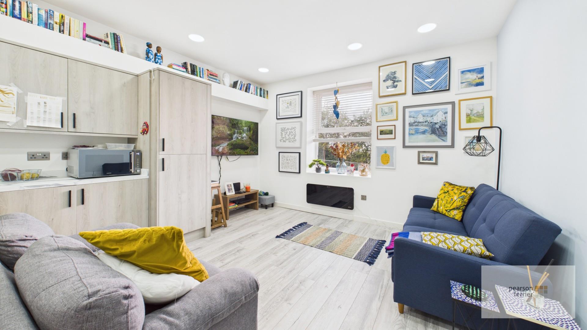 With a range of wall & base units with complementary worktops incorporating a single drainer sink unit. Built in appliances to include electric hob, oven and extraction system, integrated fridge and freezer. Laminate flooring, LED lighting. The lounge area has upvc double glazed window to the front.