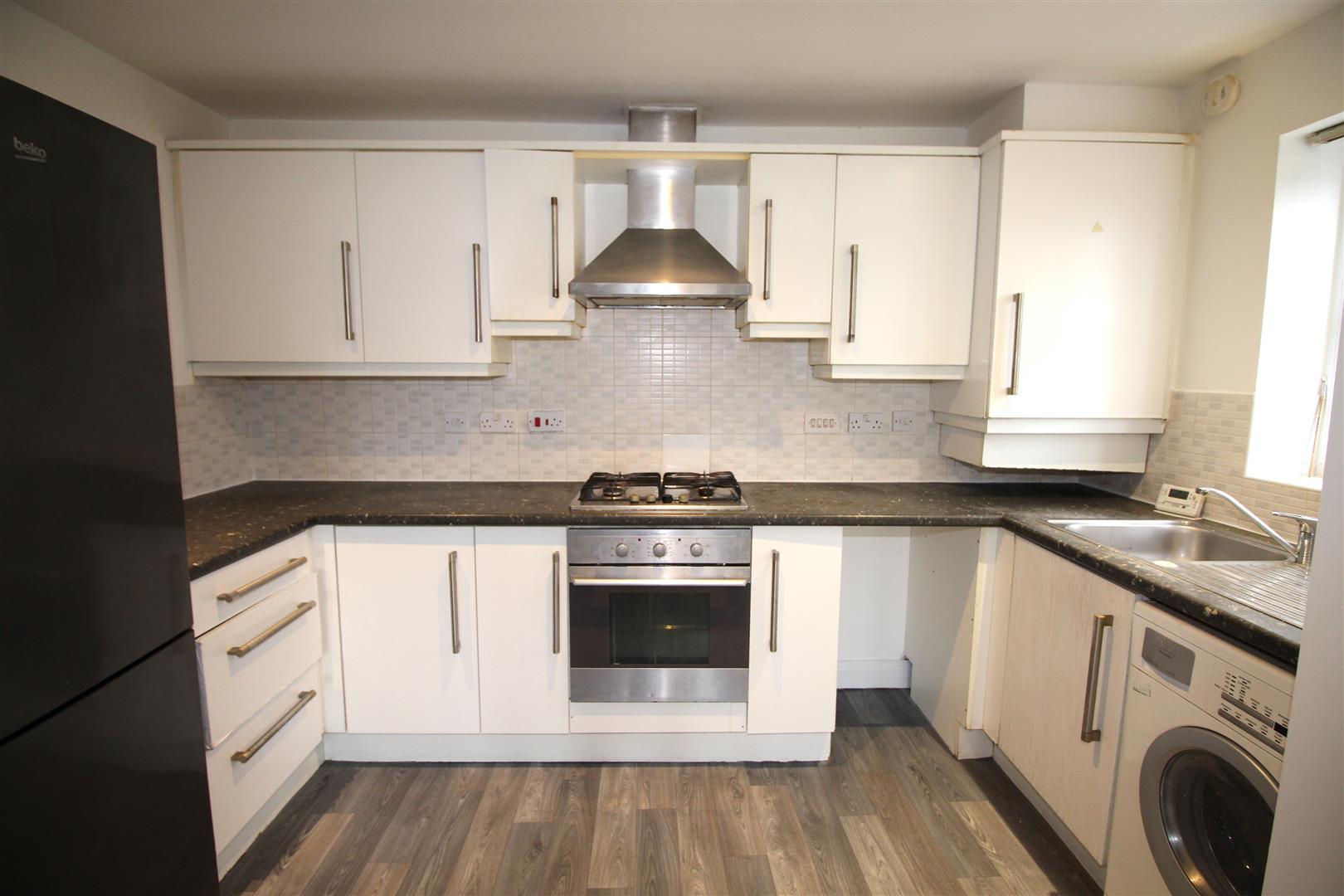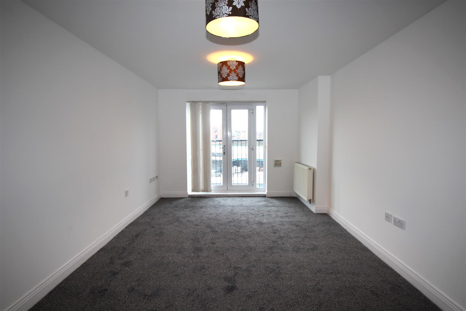 The bright open plan lounge benefits from a large window and Juliette balcony, allowing natural light to flood the space and flow into the adjoining fitted kitchen, creating a welcoming living area. The layout is practical, offering two good-sized bedrooms and a clean, modern finish throughout.