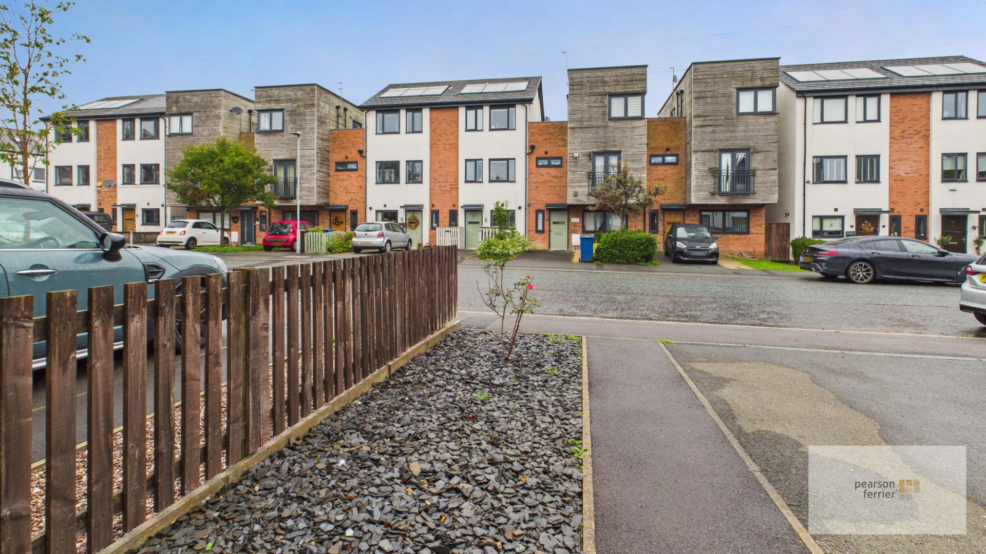 The property has a low maintenance garden forecourt and a driveway providing on site parking. To the rear there is a south facing lawned garden with timber garden shed.