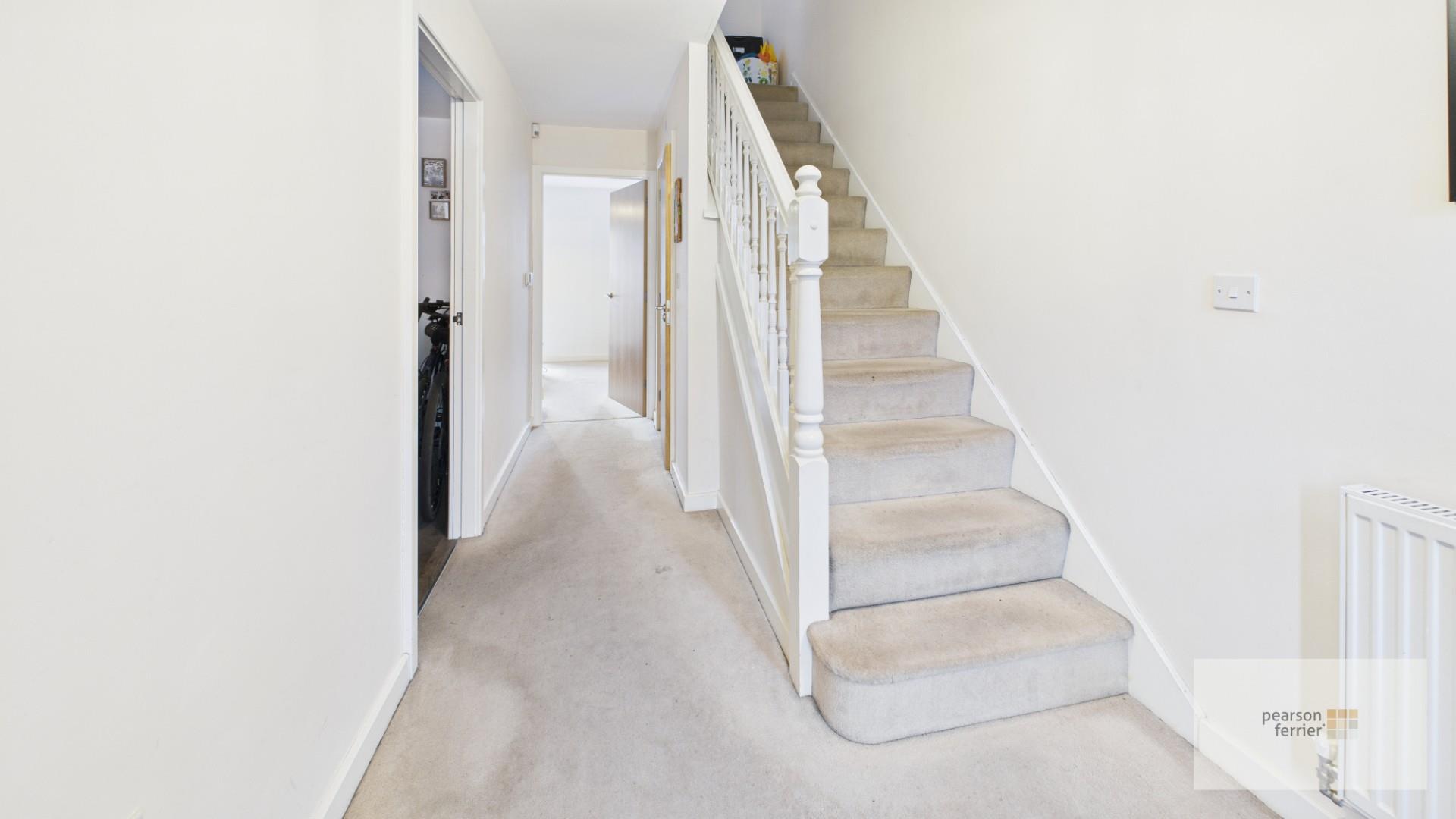 With spindled staircase to the first floor and access to guest cloakroom.
